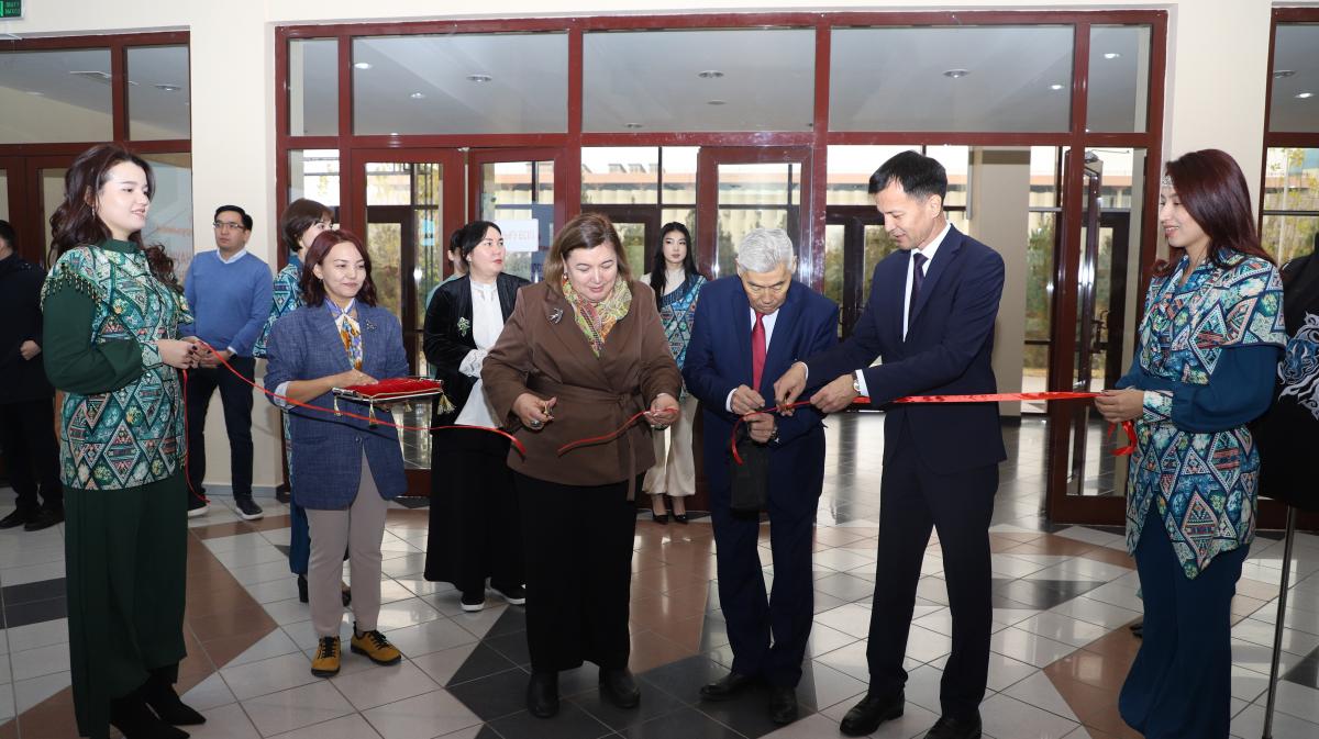 Көрменің лентасын Академиялық мәселелер жөніндегі вице-ректор Эльмира Идрисова, Әлеуметтік-мәдени даму жөніндегі вице-ректор Еділ Төлегенов және Ө.Жәнібеков атындағы ОҚПУ-дың педагогика ғылымдарының докторы, профессор Қуандық Ералин қиды.