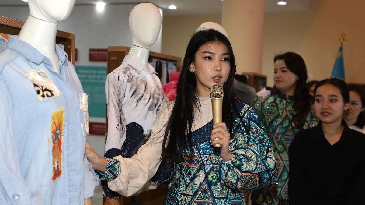 Айта кетейік, шара барысында Бейнелеу өнер кафедрасының аға оқытушысы Динара Есеналиеваның жетекшілігімен, 2025 жылғы бітіруші түлектер дайындаған «Самғау» коллекциясынан сәндік дефиле де өтті.