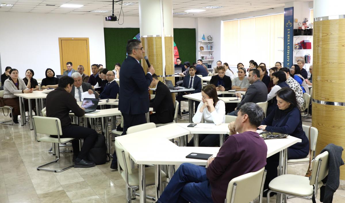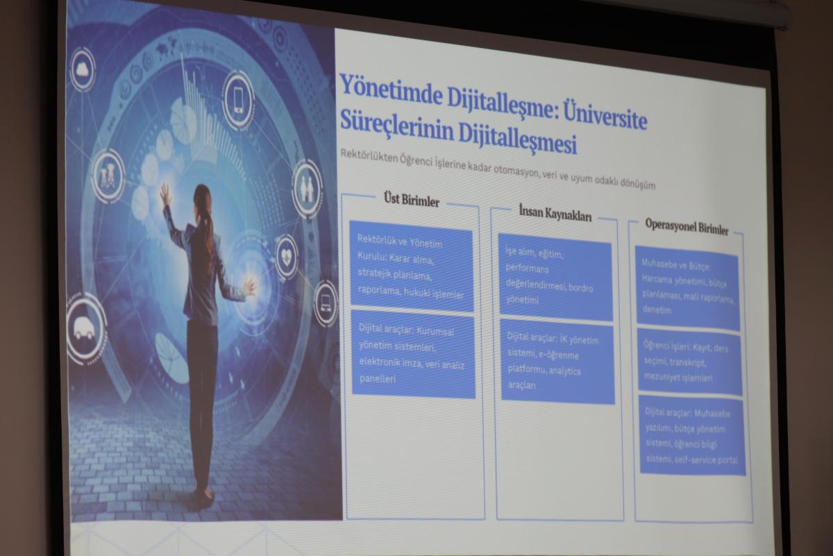 Семинар барысында спикер жоғары оқу орындарындағы цифрлық трансформацияның мәні мен оның бүгінгі күндегі қажеттілігіне кеңінен тоқталды. Жаһандық деңгейде университеттер арасында бәсеке күшейіп, білім беру сапасы мен басқару тиімділігі цифрлық мүмкіндіктер арқылы айқындалатынын жеткізді.