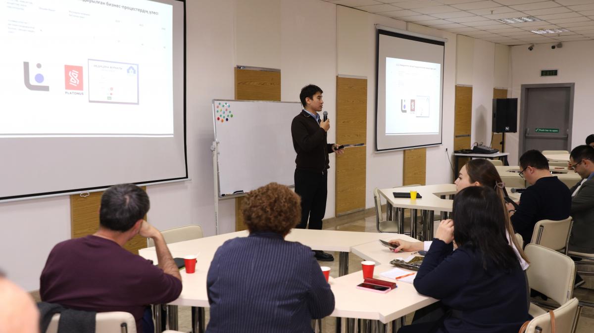 Спикерлер оқу ордамызда автоматтандырылған бизнес-процестердің үлесі туралы ақпарат берді. Оның қатарында: Luna электронды құжат айналымы, Platonus бағдарламалары бар.