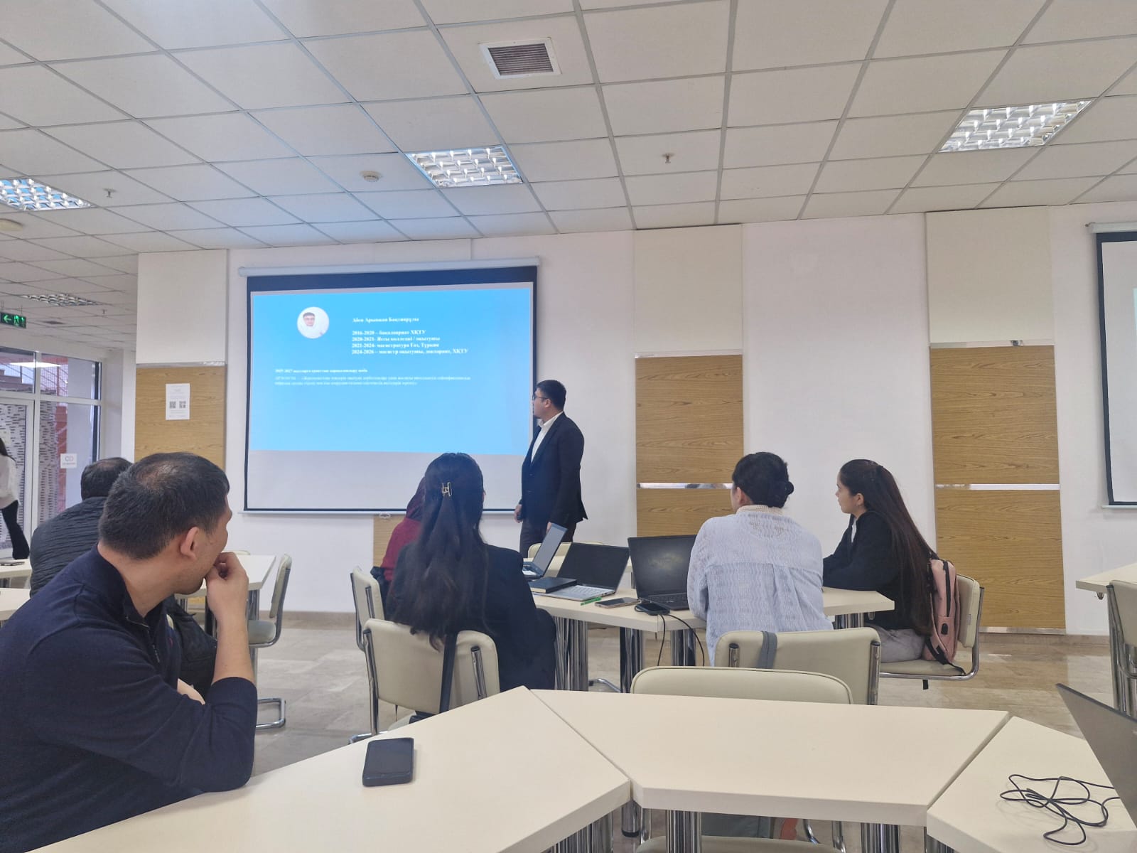 Компьютерлік инженерия кафедрасының магистр оқытушысы Абен Арыпжан Жас ғалымдар кеңесі ұйымдастыруымен университет кітапханасының co-working залында семинар дәрісін өткізді. Семинар “Ғылыми зерттеулерде жасанды интеллектті қолдану мүмкіндіктері” атты тақырып аясында жүргізілді. Семинар барысында жасанды интеллекттің қолдану туралы заңды нормалары және ғылыми жұмыстарды жасауда жасанды интеллект құралдары қамтылды.
