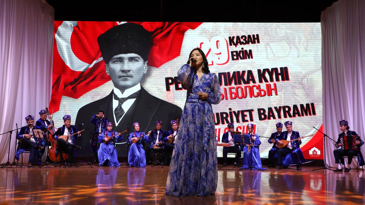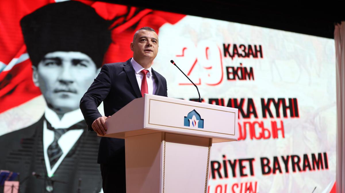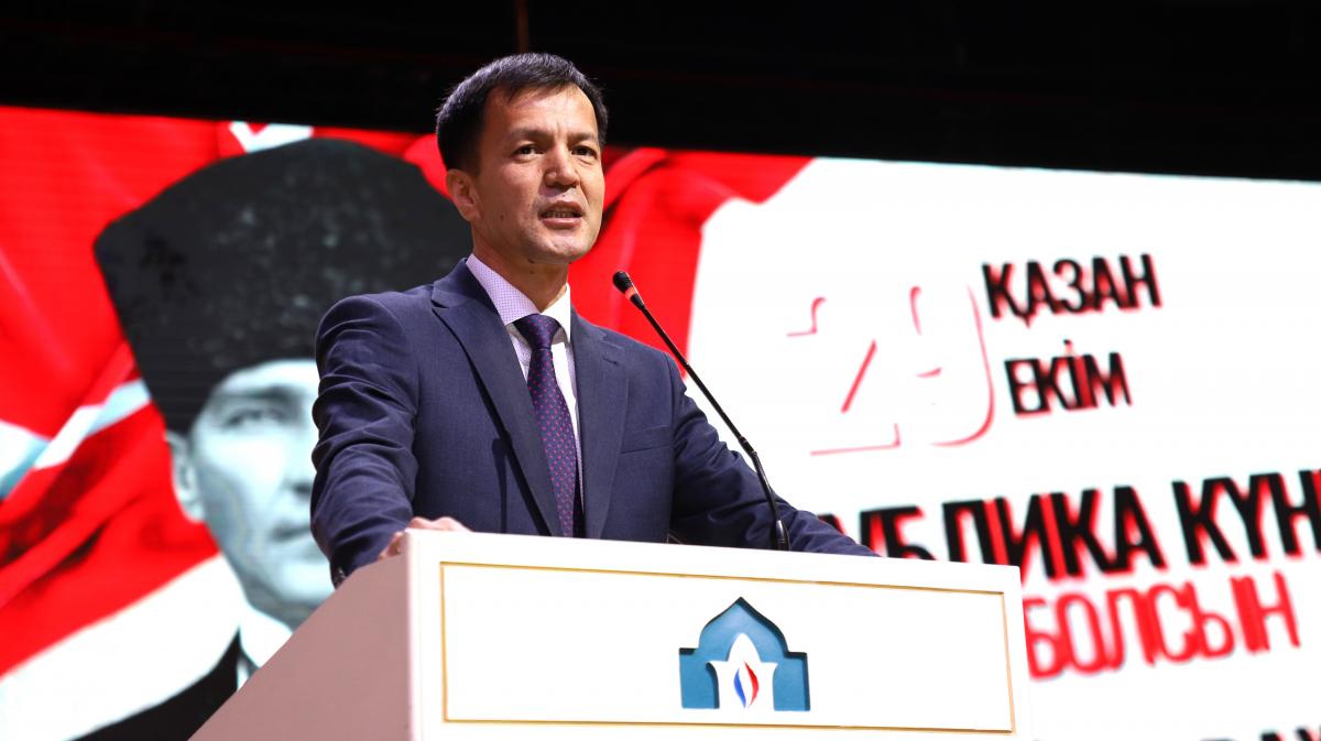“Dear guests and students! On the 102nd anniversary of our Republic, it brings us great joy to gather here, on our homeland — in Turkistan! I congratulate the entire Turkic world on this remarkable day. We owe an eternal debt of gratitude to Mustafa Kemal Atatürk and his comrades who sacrificed their lives for independence. We honor the memory of our heroes. May our Republic flourish forever!”
