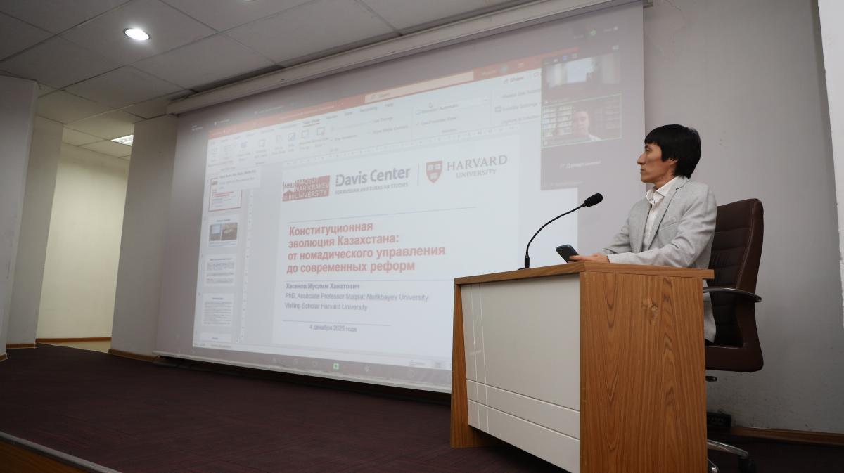 Басқосудың алғашқы күні Қонақ дәрістерден бастау алды. Ең алдымен, Мақсұт Нәрікбаев университетінің қауымдастырылған профессоры, ҚР Конституциялық Соты жанындағы Ғылыми-консультативтік кеңестің мүшесі, Гарвард университетінен шақырылған ғалым Мүслим Хасенов ZOOM желісі арқылы онлайн байланысқа шықты. Профессор «Қазақстанның конституциялық эволюциясы: көшпелі басқарудан заманауи реформаларға дейін» тақырыбында баяндама оқыды.