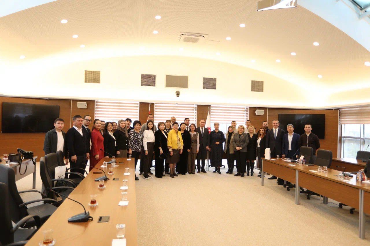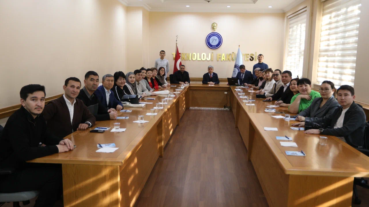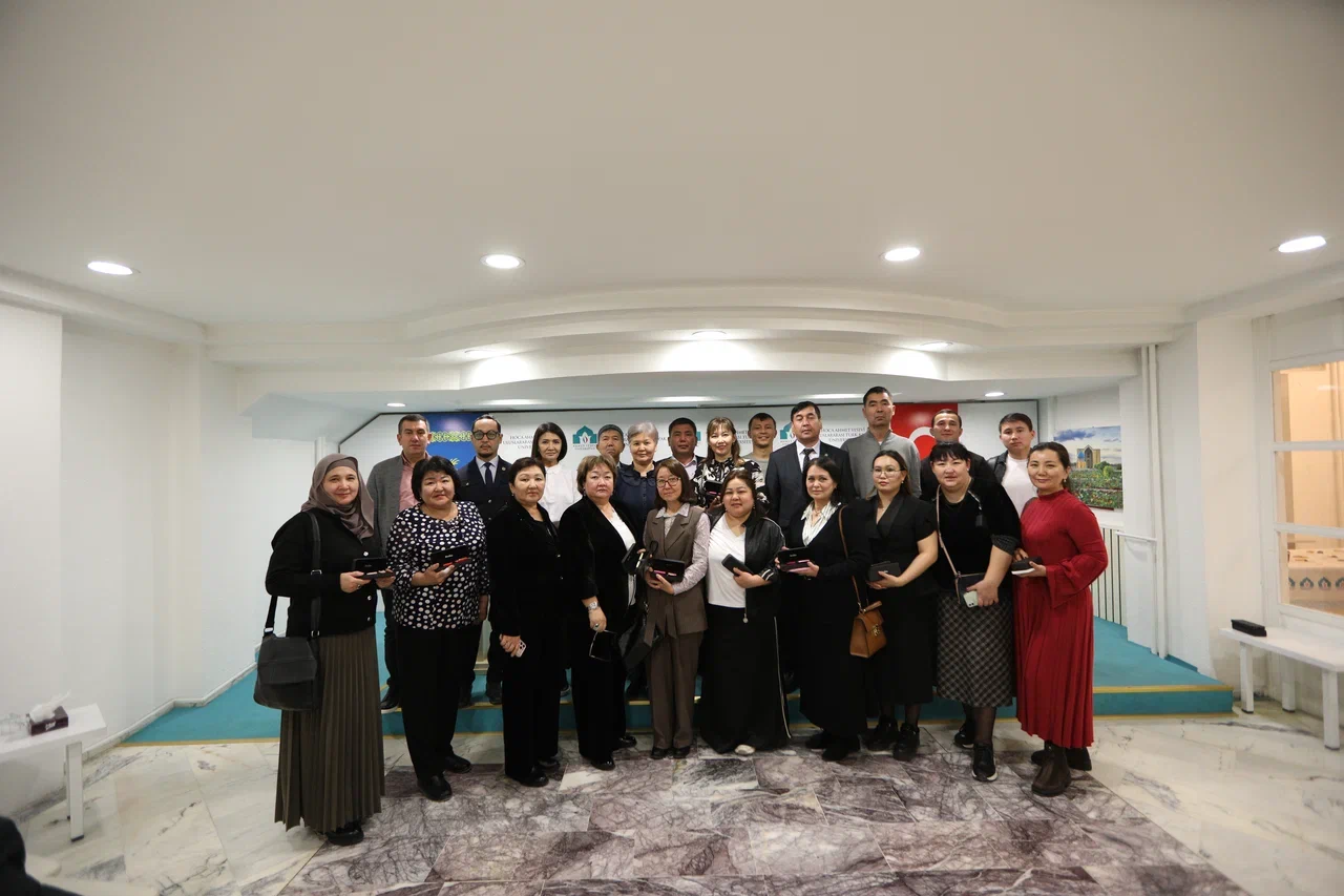 Сонымен қатар, оқытушы-профессорлар мен қызметкерлер университетіміздің Өкілетті Кеңес төрағасы Мұхиттин Шимшекпен кездесті. Ата жұрттан арнайы келген қонақтарды төраға құшақ жая қарсы алды. Баршаға университет дамуына қосқан үлестері мен адал еңбектері үшін ризашылығын жеткізді.