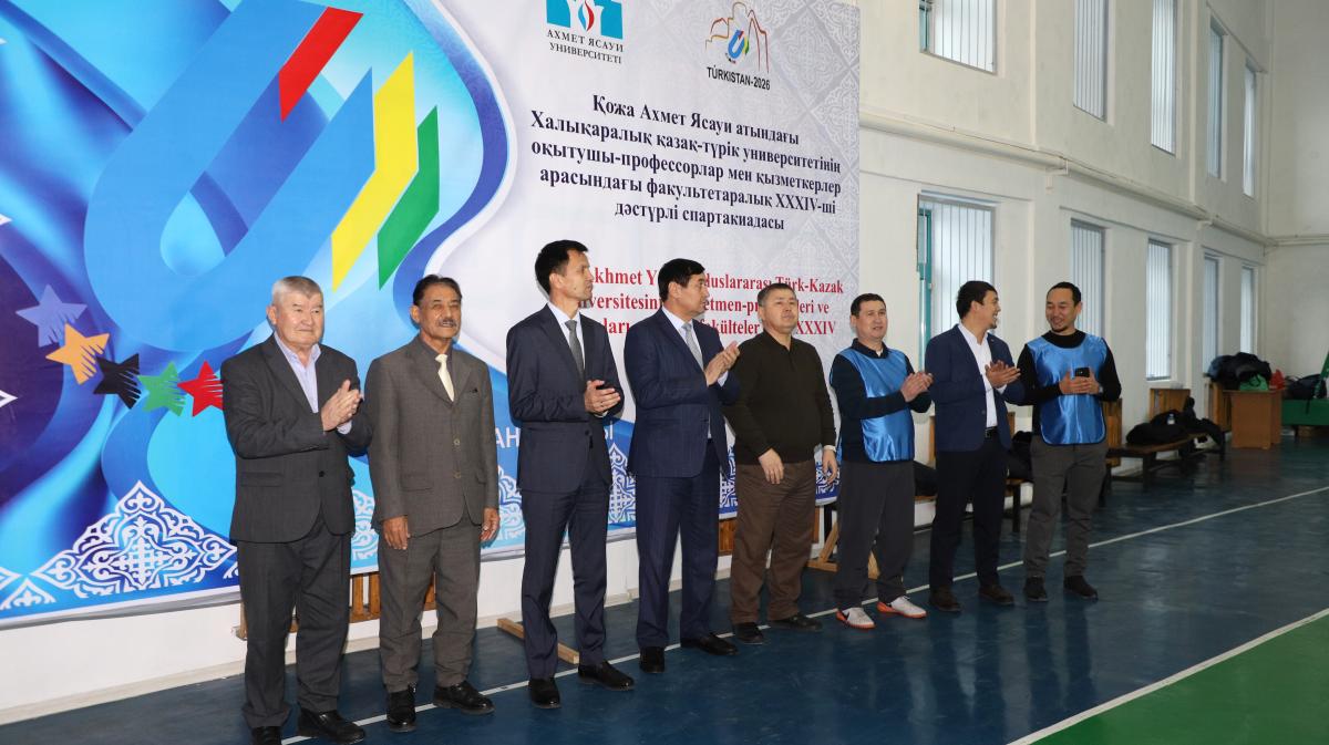 Спартакиадаға университет факультеттері, Түркістан Ахмет Ясауи колледжі, Кентау кампусы және Ректорат командалары қатысып жатыр. Қатысушылар 7 спорт түрінен: кіші футбол, волейбол (қыздар, ерлер), ату спорт түрі, тоғызқұмалақ, шахмат және арқан тарту жарыстары бойынша өзара сайысқа түседі.