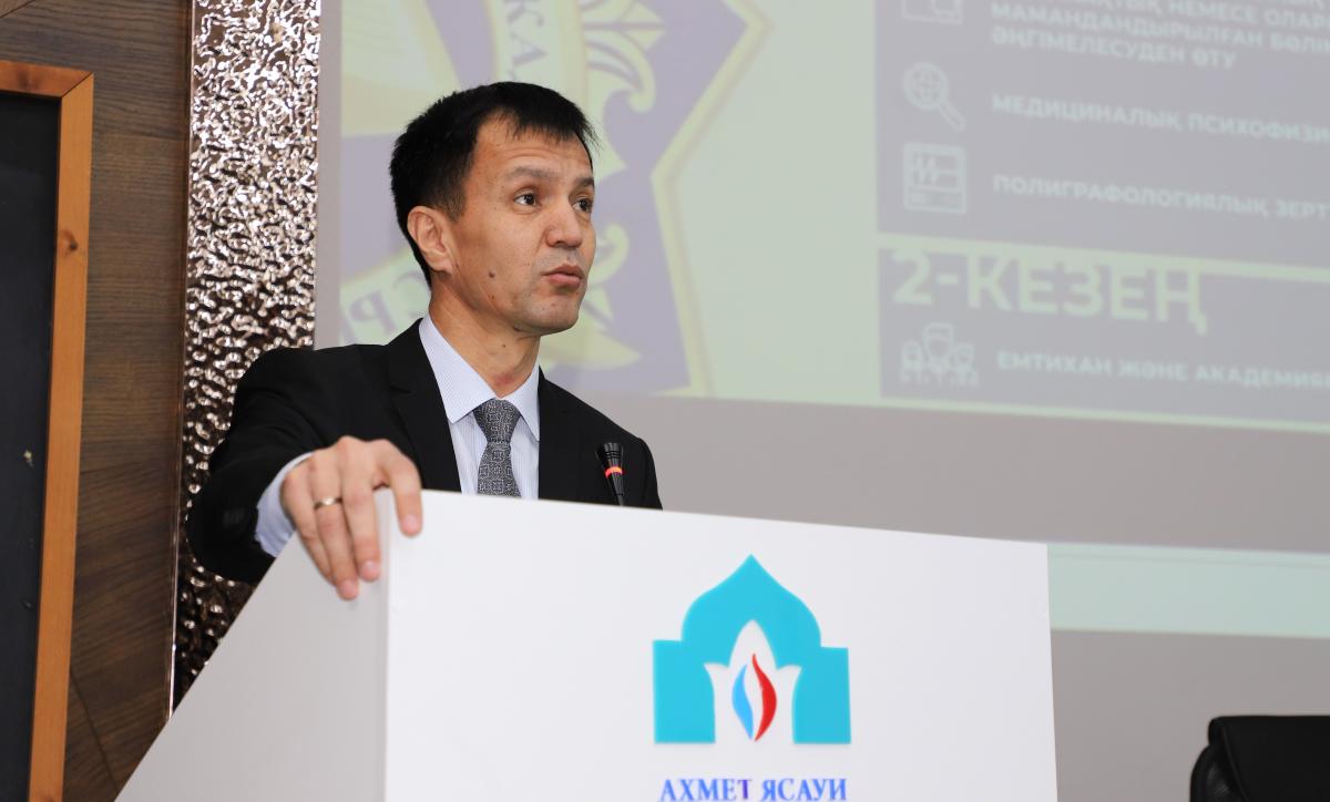 Жастар, құқықтық мәдениетті көтеретін азамат – сіздер. Заң факультетінен маман болып шыққанда, Президент Қасым-Жомарт Тоқаев айтқан «Заң мен тәртіп» концепциясын ілгерілетіп, іске асыратын да өздеріңіз. Ясауи шаңырағы – дамып, өркендеп келе жатқан университет. Осында елге қызмет етіп жүрген белгілі тұлғалар оқығанын көрдік. Сіздер де сол кісілердің қатарына қосылуларыңызға тілектеспін!