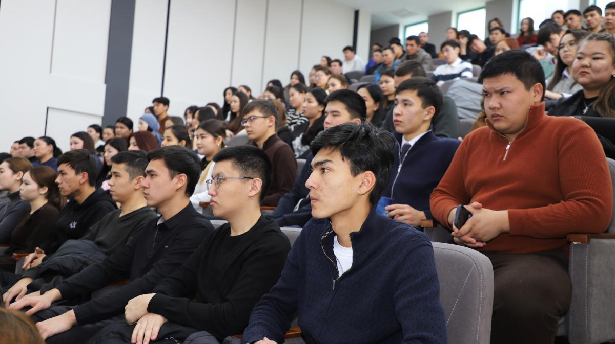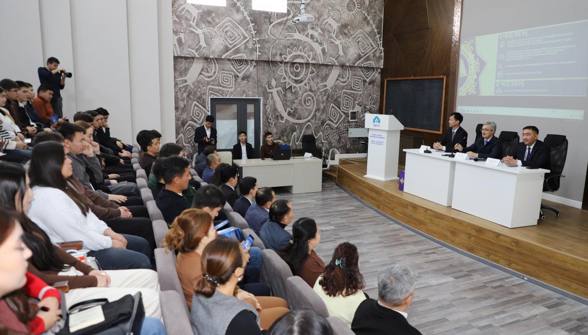 Келесі кезекте, «Заң» және «Экономика және басқару» факультеттерінің студенттерімен кездесу өтті. Жиын модераторы Әлеуметтік-мәдени даму вице-ректоры Еділ Төлегенов болды.