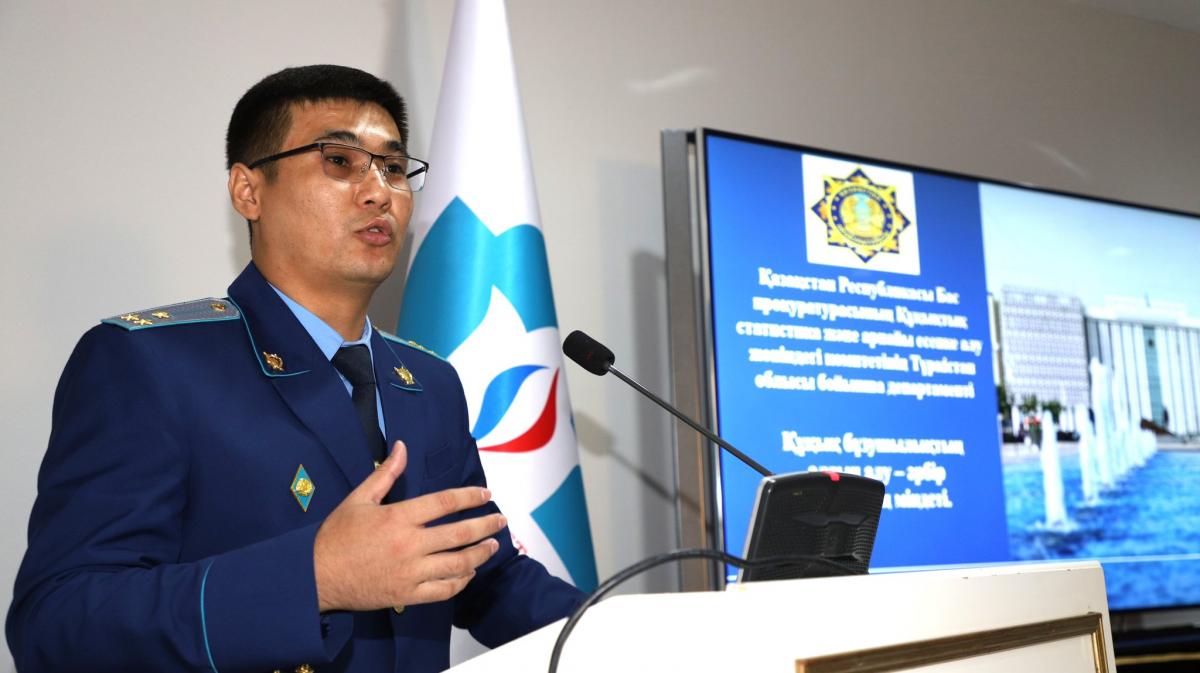 Алғашқы болып ҚР Бас прокуратурасының ҚСжАЕАК Түркістан облысы бойынша департаментінің бөлім прокуроры Мейірхан Мамыт мінберге шығып, құқық бұзушылықтың алдын алудағы азаматтық жауапкершілік жайында баяндады.
