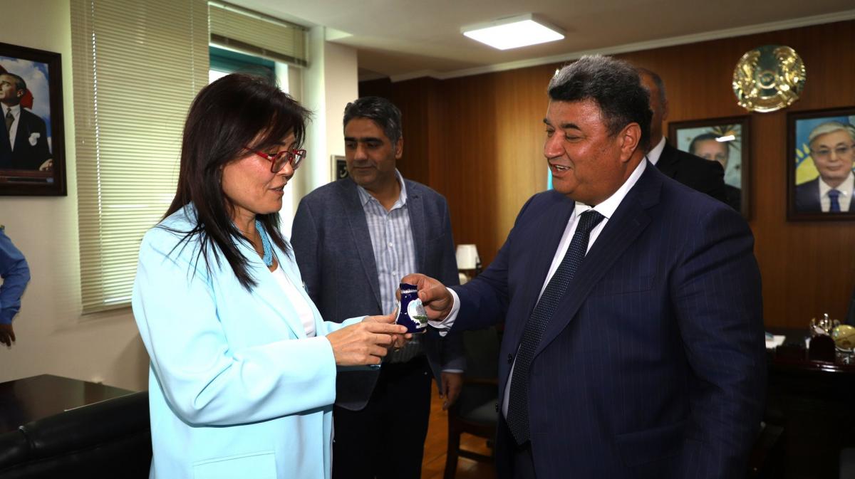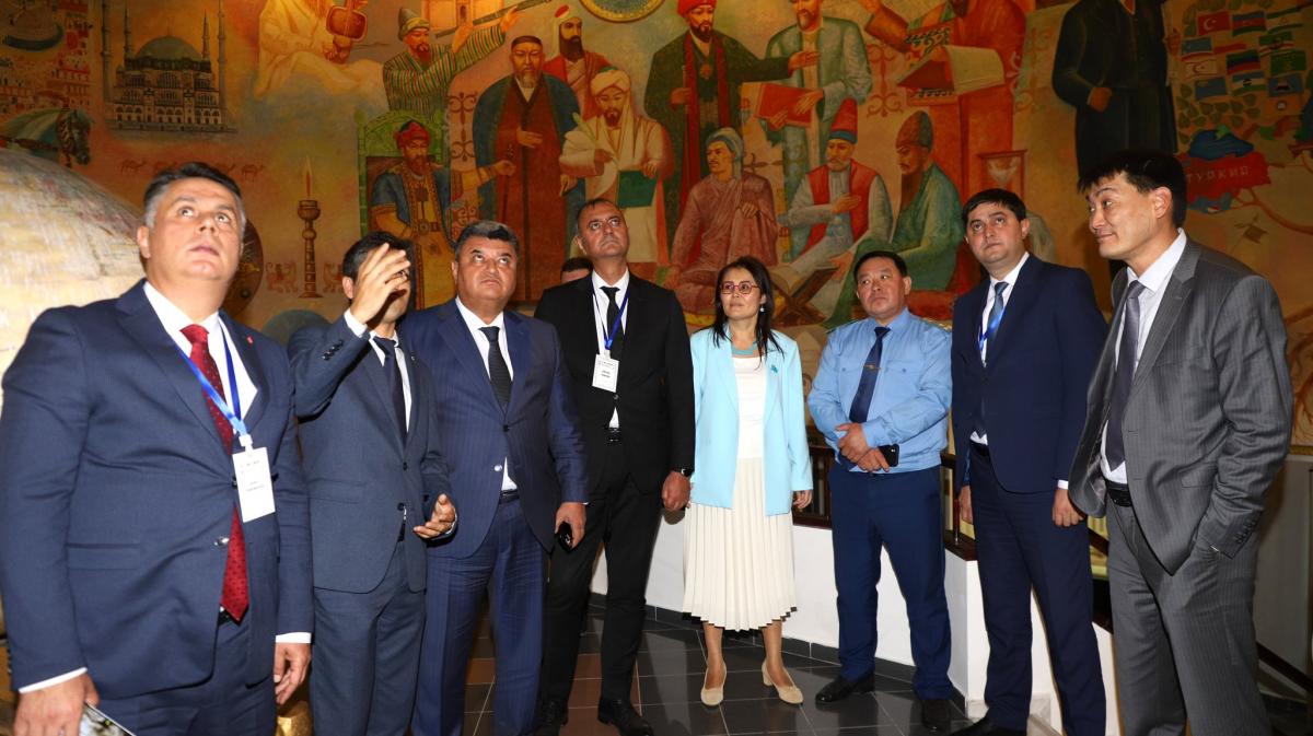 Ең алдымен, ректор Жанар Темірбекова қонақтарға университет тыныс-тіршілігін таныстырып, білім беру ісі мен қайта құрылған Заң факультеті туралы ақпарат берді. Қонақтар Түркі халықтарының тарихы понорамалық мұражайы мен Махмұд Қашқаридің «Диуани лұғат ат-түрк» еңбегінің 950 жылдығына арналған көрмені тамашалады.