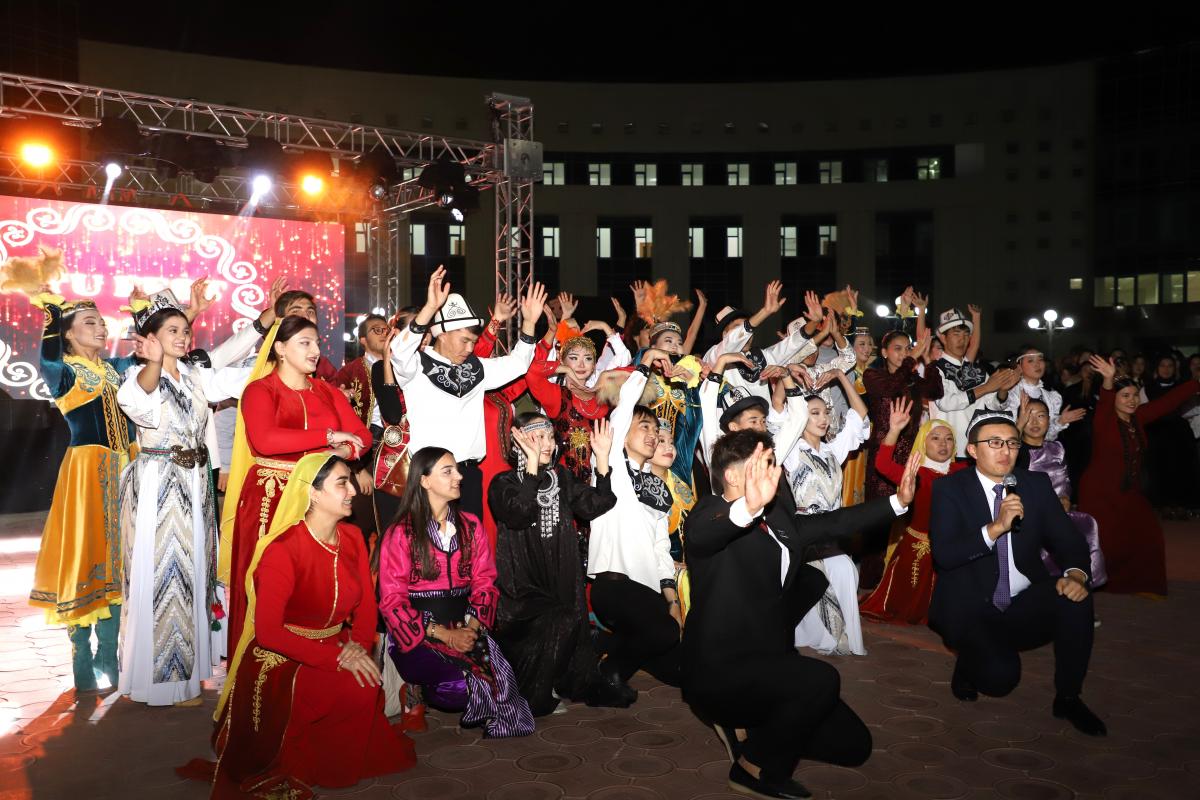 Концерттік бағдарламаға ұласқан көңілді кеште студенттер өз өнерлерін ортаға салды. Студенттік декандар мен өзге де белсенді, өнерлі студенттер ән шырқады. Университеттің түркітілдес халықтарынан жиналған студенттері ұсынған «Достық» биімен көптің қошеметіне бөленді.