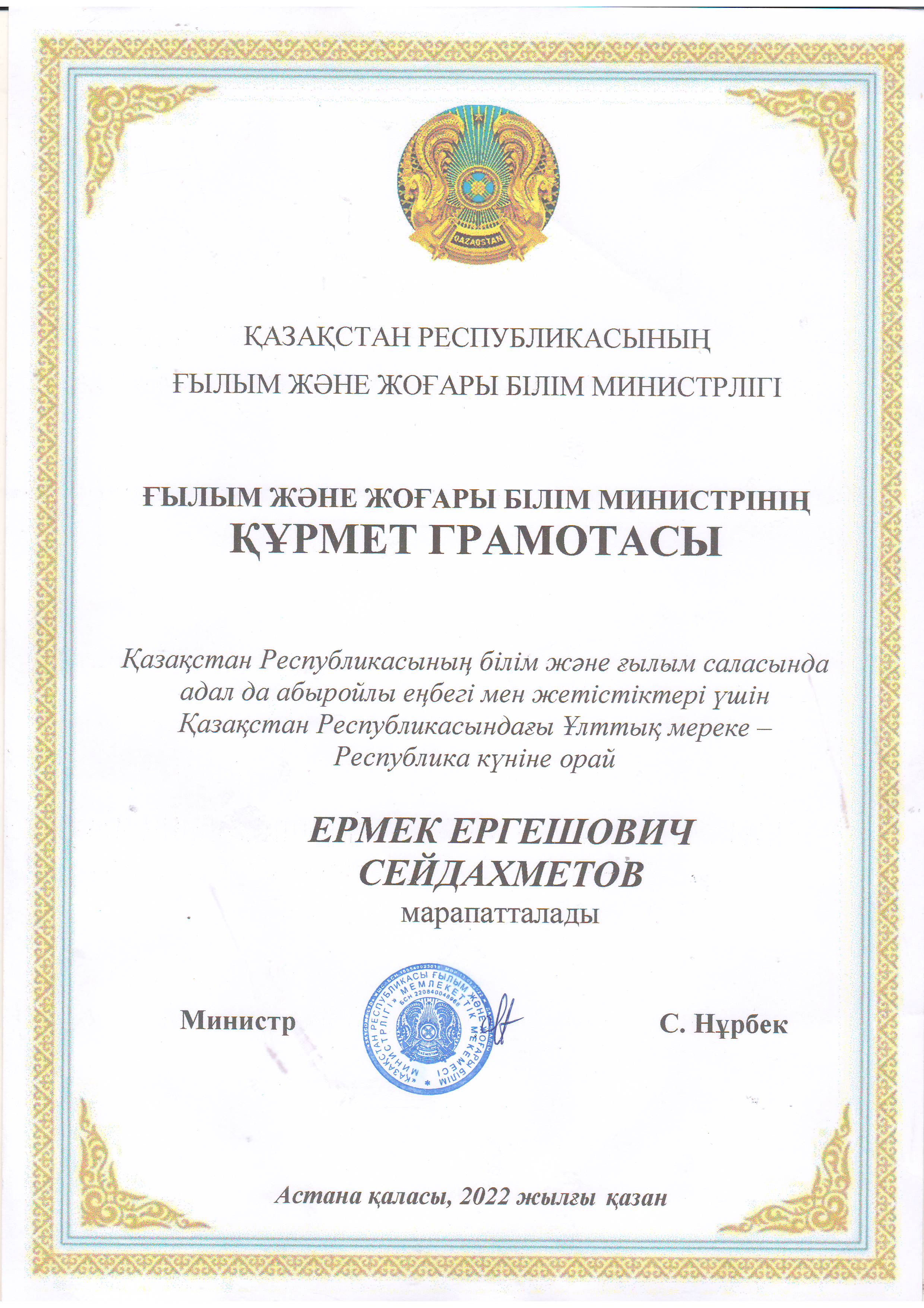Аты-жөні: Сейдахметов Ермек Ергешович