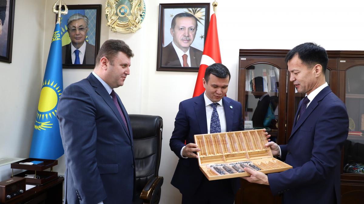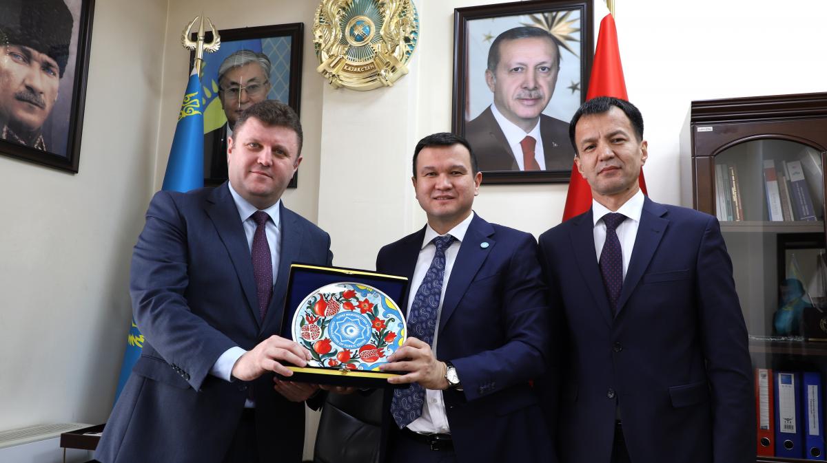 В университет прибыл заместитель Генерального секретаря Организации тюркских государств Мерей Мукажан. Почётный гость прежде всего встретился с вице-ректором по финансам и международным связям Мустафой Гиритлиоглу и вице-ректором по социально-культурному развитию Едилом Толегеновым.