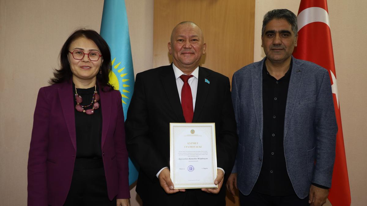 Ректор университета Жанар Темирбекова поздравила директора Кентауского кампуса Камалбека Беркимбаева с награждением Почётной грамотой Министерства науки и высшего образования Республики Казахстан за значительный вклад в развитие системы высшего образования и науки страны.