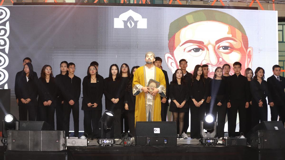 Мерекелік кеш қазақ халқының ұлы ақынына арналған «Абай» қойылымымен басталды. Басты кейіпкер сахна төрінде дана ағартушының «Толық адам» ілімін насихаттайтын қара сөздерін оқыды. Ал студенттер хоры «Көзімнің қарасы» әнін орындап, көрермендерге ерекше рухани әсер сыйлады.