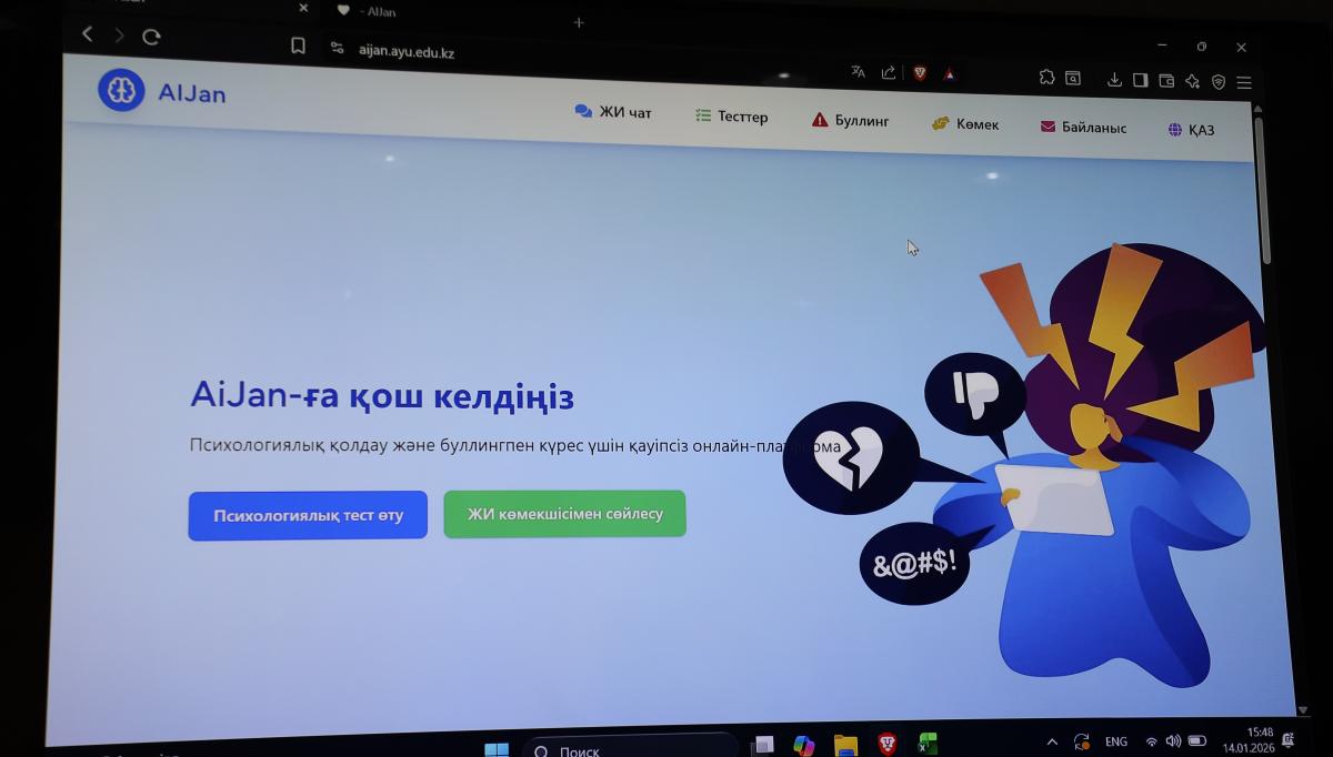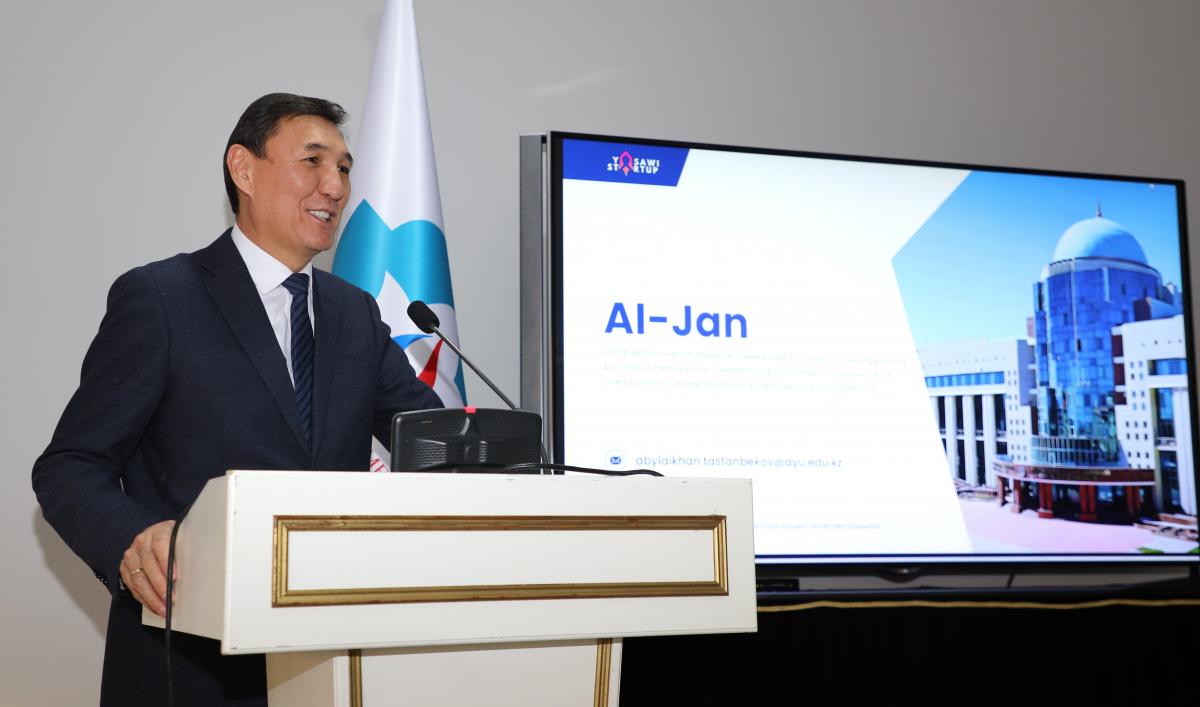 AI-Jan жобасы – университеттің Коммерцияландыру офисі жүзеге асырып отырған YASAWI STARTUP бағдарламасы аясында әзірленген. Бұл жүйе мектеп оқушылары мен студенттерге эмоционалдық күйзеліс кезінде көмек беріп, буллингтің алдын алуға көмектеседі.