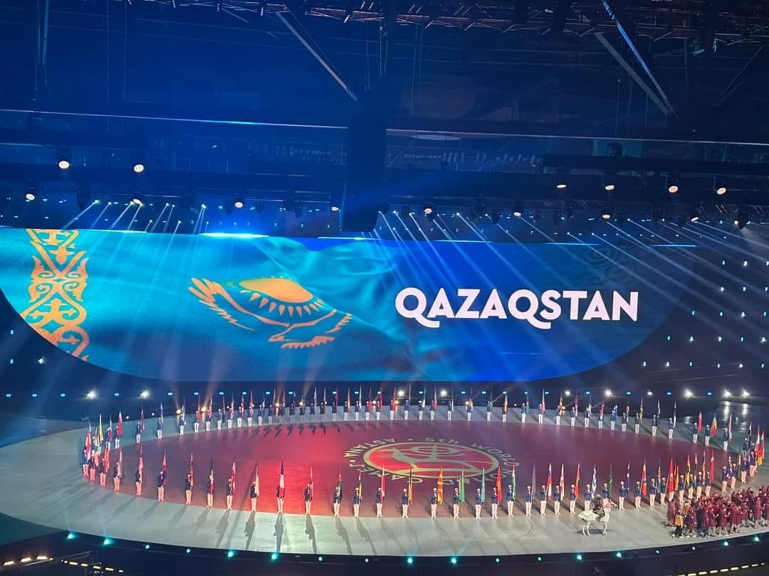 Сондай-ақ, әлемнің 90-ға жуық елінен қатысып жатқан 2500-ден астам спортшының арасында оқу орнымыздың студенттері де ел намысын қорғап жатқанын айта кетейін. Күні кеше студентіміз Жұмажан Қожамбеков пен түлегіміз Айжан Жылқыбаева қазақ күресінен өткен тартысты бәсекеде бозкілемде қарсылас шақ келтірмей, алтыннан алқа тақты. Осылайша, Қазақстан қоржынына қос алтынды салды. Жеңімпаздарымыздың жүлдесі баршамызға құтты болсын!