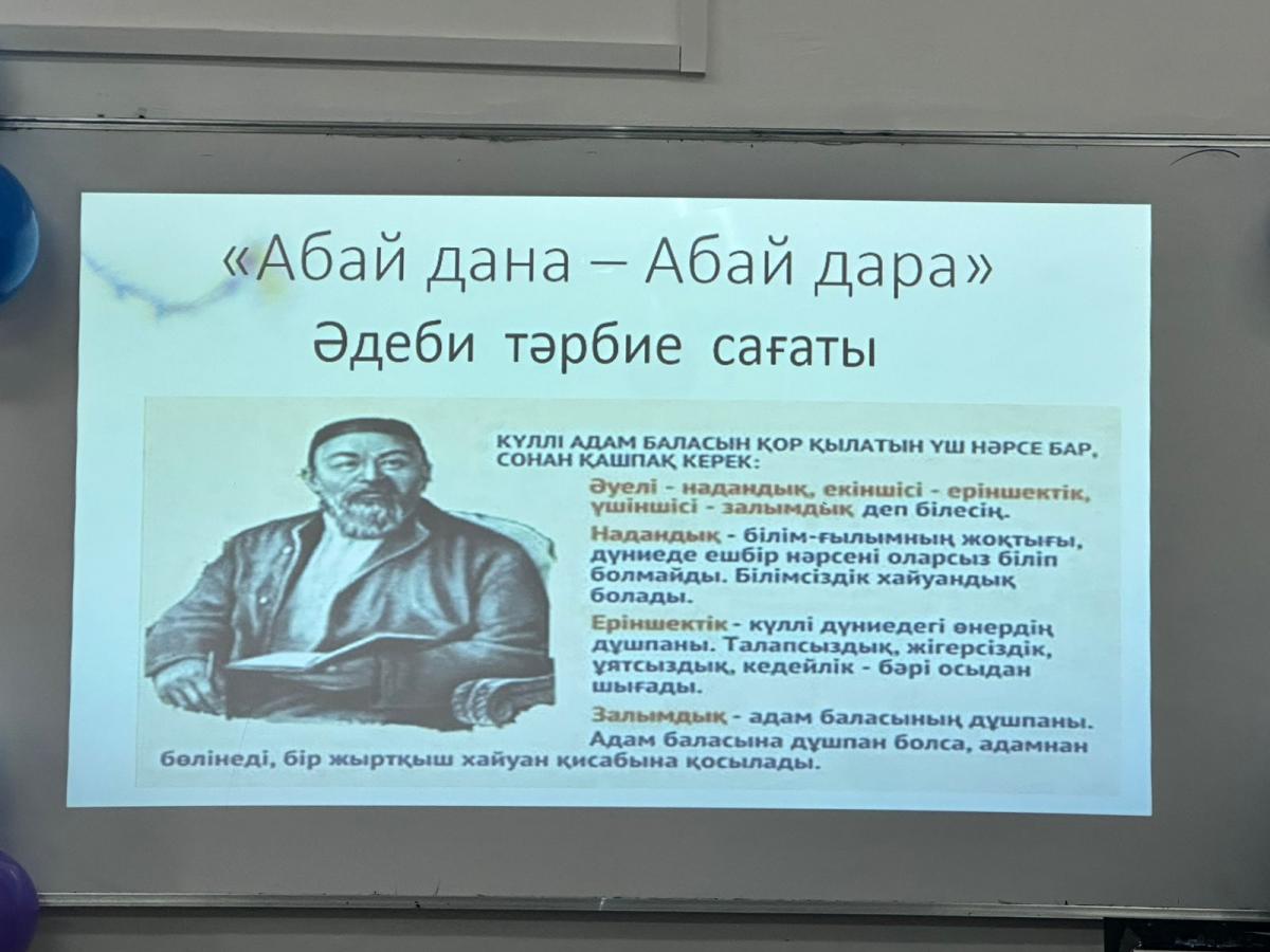 Абай Құнанбаевтың туғанына 180 жыл толуына арналған «Абай дана – Абай дара» атты ашық әдеби тәрбие сағаты