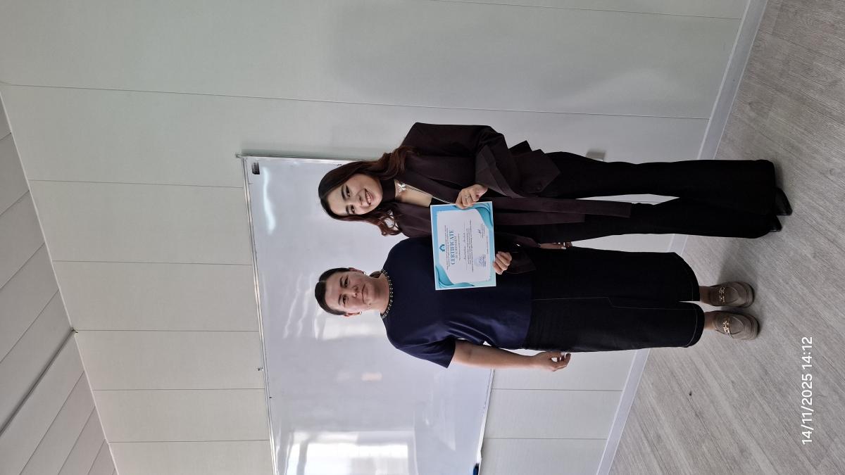 One of the second-place winners is Aigul Abinova, a student of group FAD-211A, with the research titled “English Philology Lecturers’ Use of ChatGPT in Higher Education: Practices, Challenges, and Students’ Attitudes toward Its Use.”