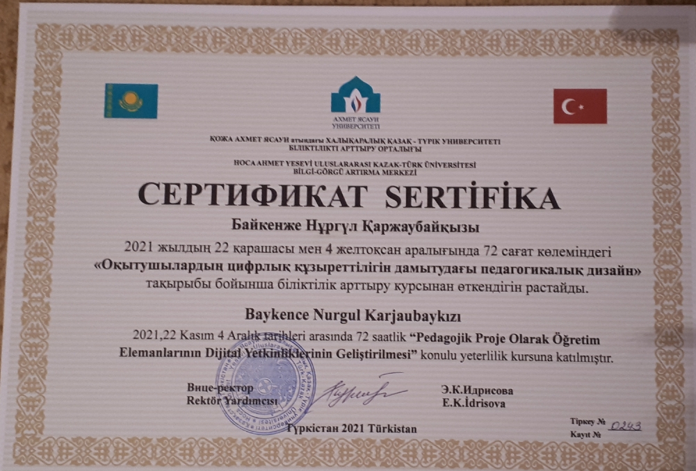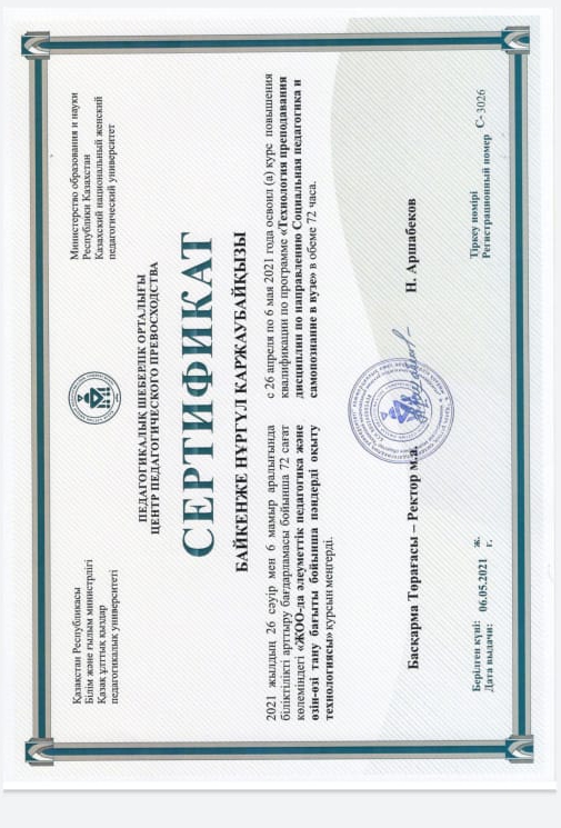 Байкенже Нұргүл Қаржаубай қызы 1979 жылы мамыр айының 18 – жұлдызында Оңтүстік Қазақстан облысы Шорнақ елді мекенінде дүниеге келдім. Оңтүстік Қазақстан облысы, Түркістан ауданы «ХХ-партсьезд» жалпы орта мектебіне 1985 жылы барып, 1996 жылы Оңтүстік Қазақстан облысы, Түркістан ауданы «Майдантал» жалпы орта мектебінде оқуды аяқтадым.1996-2000 жылдар аралығында М.О.Әуезов атындағы Оңтүстік Қазақстан Мемлекеттік университетін бітіріп, 2000 жылы М.О.Әуезов атындағы Оңтүстік Қазақстан Мемлекеттік университетіне педагогика мамандығы бойынша магистратураға оқуға түсіп, 2001 жылы «Педагогика» ғылым магистрі деген академиялық дәреже берілді. 2003-2004 жылдар аралығында «Тұран» колледжіне педагогика пәнінің оқытушысы болып жұмысқа қабылдандым. 2005 жылдың қаңтар айынан бастап Қожа Ахмет Ясауи атындағы Халықаралық қазақ-түрік университетінің Кентау бөліміне оқытушы қызметіне қабылдандым. 2014 жылы М.О.Әуезов атындағы Оңтүстік Қазақстан Мемлекеттік университетінде «Педагогика және психология» мамандығы бойынша білім бакалавры академиялық дәрежесі берілді. 2007 жылы Қ.А.Ясауи атындағы Халықаралық қазақ-түрік университетінің «Жалпы психология» кафедрасына оқытушы қызметіне жұмысқа қабылдандым. Қазіргі таңда Қожа Ахмет Ясауи атындағы Халықаралық қазақ-түрік университетінің «Педагогика және психология» кафедрасында аға оқытушы қызметінде жұмыс атқарып келемін.Бірнеше ғылыми-әдістемелік мақалалардың авторымын. ҚР БҒМ БҒССҚК ұсынған ғылыми журналдардағы ғылыми жарияланымдарда және ғылыми-практикалық конференцияларда еңбектерім жарық көрген.