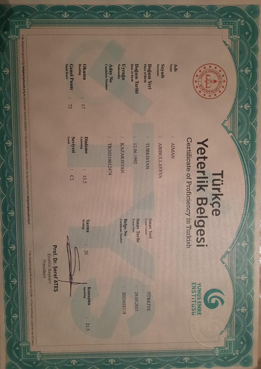 | Kısa Bilgi | Сенат хатшысы, PhD., Acting Associate Professor |