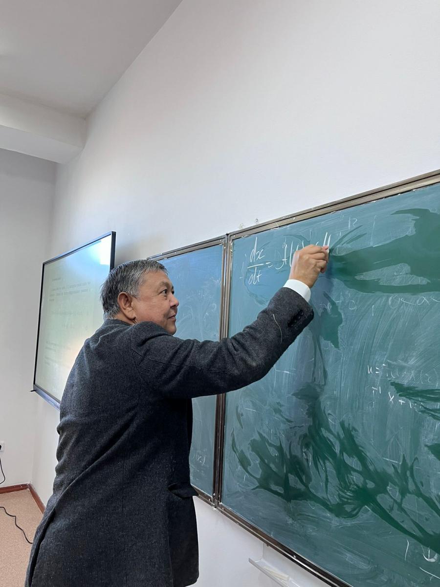 Математика кафедрасының доценті, физика- математика ғылымдарының кандидаты Қ.Ы.Усманов жасаған баяндамасында маңызды мәселелерді қарастырды. Атап айтқанда: инволютивті түрленген дифференциалдық және интегралдық – дифференциалдық теңдеулерді шешу кезінде Коши есебінің бірмәнді шешімділігі айтылды.
