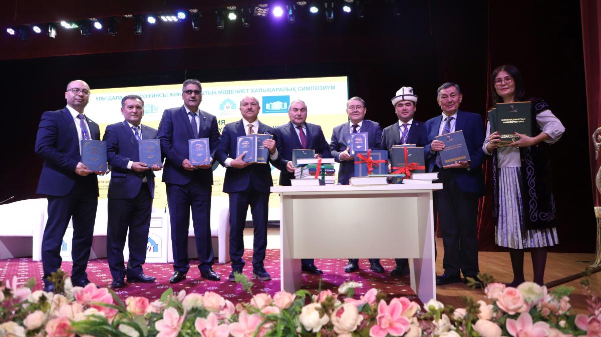 Айта кетейік, секция соңында профессор Жаббар Эшанкул университетімізге Әлішер Науаидың «Прозалық шығармаларын», «Өзбек тілінің түсіндірме сөздігі», «Тәуелсіздік дәуіріндегі өзбек науаитануы» атты еңбектерді және тағы да басқа 100 дана кітапты сыйға тартты. Сондай-ақ, профессор Азиз Биймырзаұлы да репрессия жылдары қысым көрген «манастанушылардың» кітаптарын, қазақтың ұлы ғалымы, «Манасты» көпшілікке танытқан Шоқан Уалихановқа арналған кітапты да университет кітапханасына тарту етті.