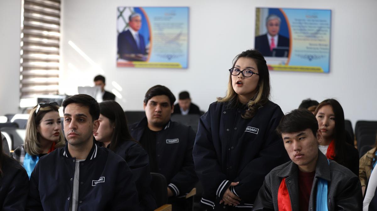 Ашық диалог форматында ұйымдастырылған кездесуде студенттер диплом алғаннан кейінгі мансаптық мүмкіндіктер, мемлекеттік қызметке орналасу жолдары жөнінде сұрақтарын қойып, жан-жақты жауап алды.