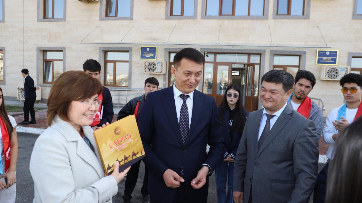 Сауран қалашығына ұйымдастырылған танымдық экскурсия аясында университетіміздің студенттері Сауран ауданы әкімдігіне арнайы барып, аудан әкімі Мақсат Таңғатаров мен әкімдік аппаратының өкілдерімен кездесті.