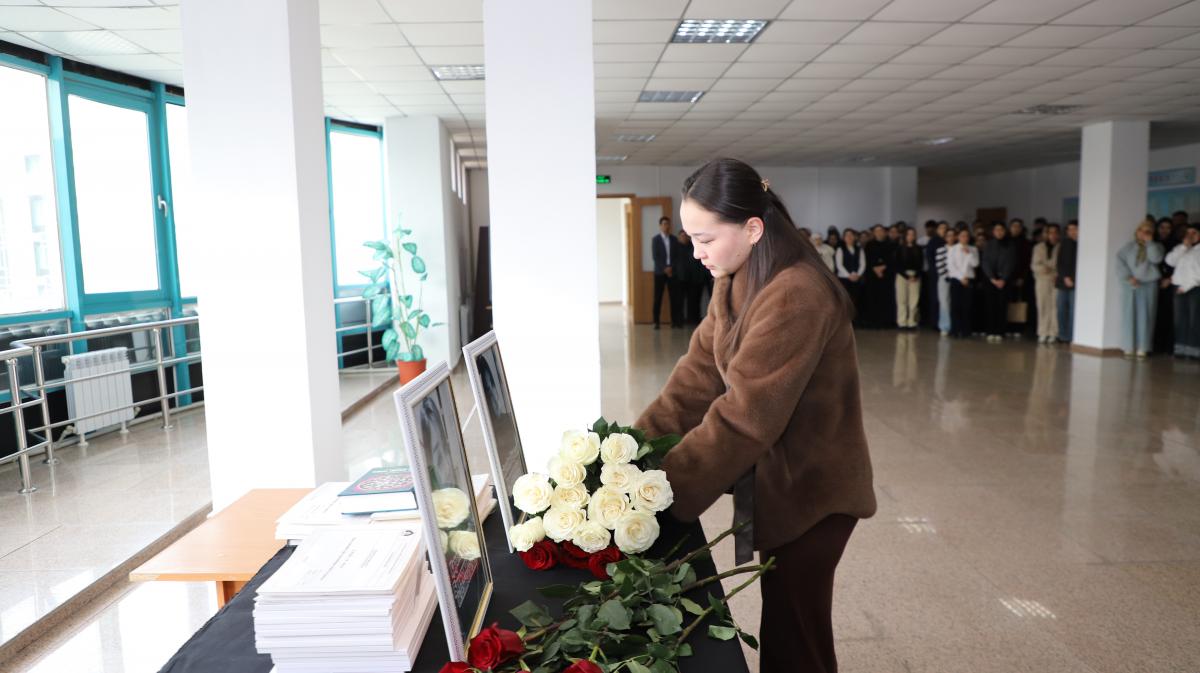 Мезгілсіз қаза болған студенттеріміз – Жаратылыстану ғылымдары факультетінің білімгерлері Нұрай Қаратай мен Шұғыла Сейсенбек. Студенттеріміз білім алған факультетте бір топта оқыған достары мен оқытушылары еске алып, гүл шоқтарын қойды.