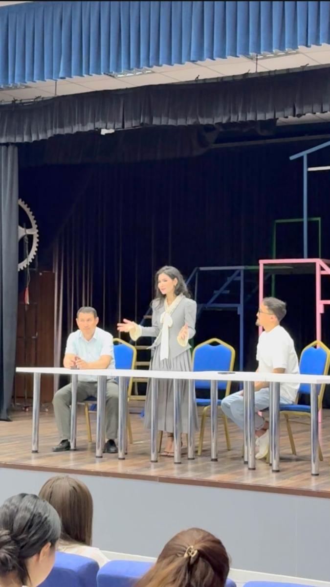 Театр ұжымының арнайы гастрольдік сапары аясында, университетке «Дарын» мемлекеттік жастар сыйлығының лауреаты, «Құрмет» орденінің иегері Жандарбек Садырбаев пен Мейрамбек Тағанов арнайы келіп, студенттермен ашық сұхбат өткізді. Театр өнерінің мәні, сахна мәдениеті, шығармашылық жолдағы қызықты сәттер мен қиындықтар, сондай-ақ тұлғалық қалыптасу туралы терең әңгімелер өрбіді. Қос актер студент жастардың сауалдарына шынайы әрі әсерлі жауаптар беріп, өмірлік тәжірибелерімен бөлісті.