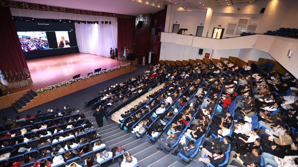 «Құрметті ғалымдар мен оқытушы-профессорлар, студенттер, сіздерді оқу ордамыздың төрінде, түркі әлемінің рухани астанасы Түркістанда көргеніме қуаныштымын! Түркістан – Қожа Ахмет Ясауи бабамыздың рухани мұрасы қалған, күллі түркі жұрты құрмет көрсеткен киелі жер екенін білеміз. Ал, дәл осы қаладағы Ясауи бабамыздың атын алған оқу ордамыздың да орны туралы атап өтпесек болмайды.Себебі, бұл университетте 40 мемлекеттен келген түркі жастары білім алады.