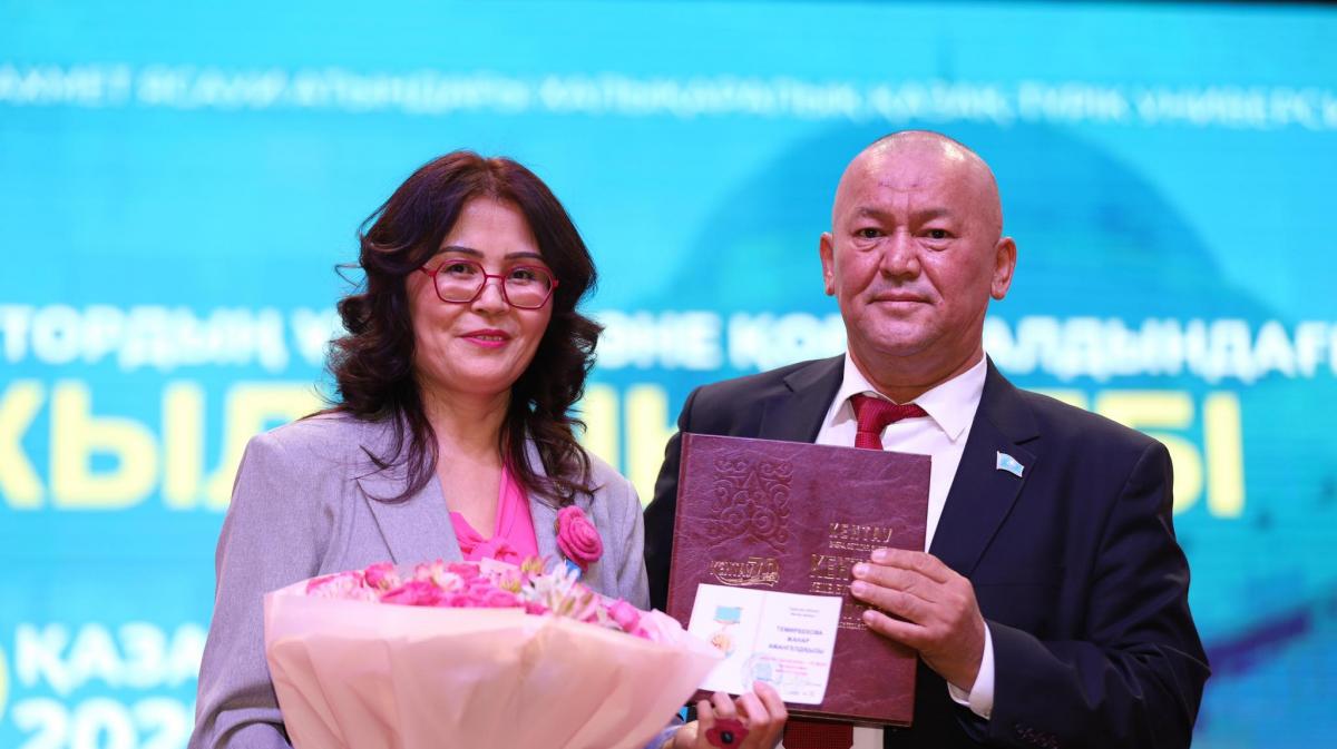 Сондай-ақ, ректорымыз Кентау қаласының 70 жылдық мерейтойы қарсаңында Қаланың өркендеуіне қосқан үлесі үшін «Кентау қаласына - 70 жыл» арнайы төсбелгімен марапатталды. Кентау қаласының әкімі Жандос Тасовтың ізгі тілегін Кентау кампусының директоры, Кентау қалалық Мәслихатының депутаты Камалбек Беркімбаев жеткізді.