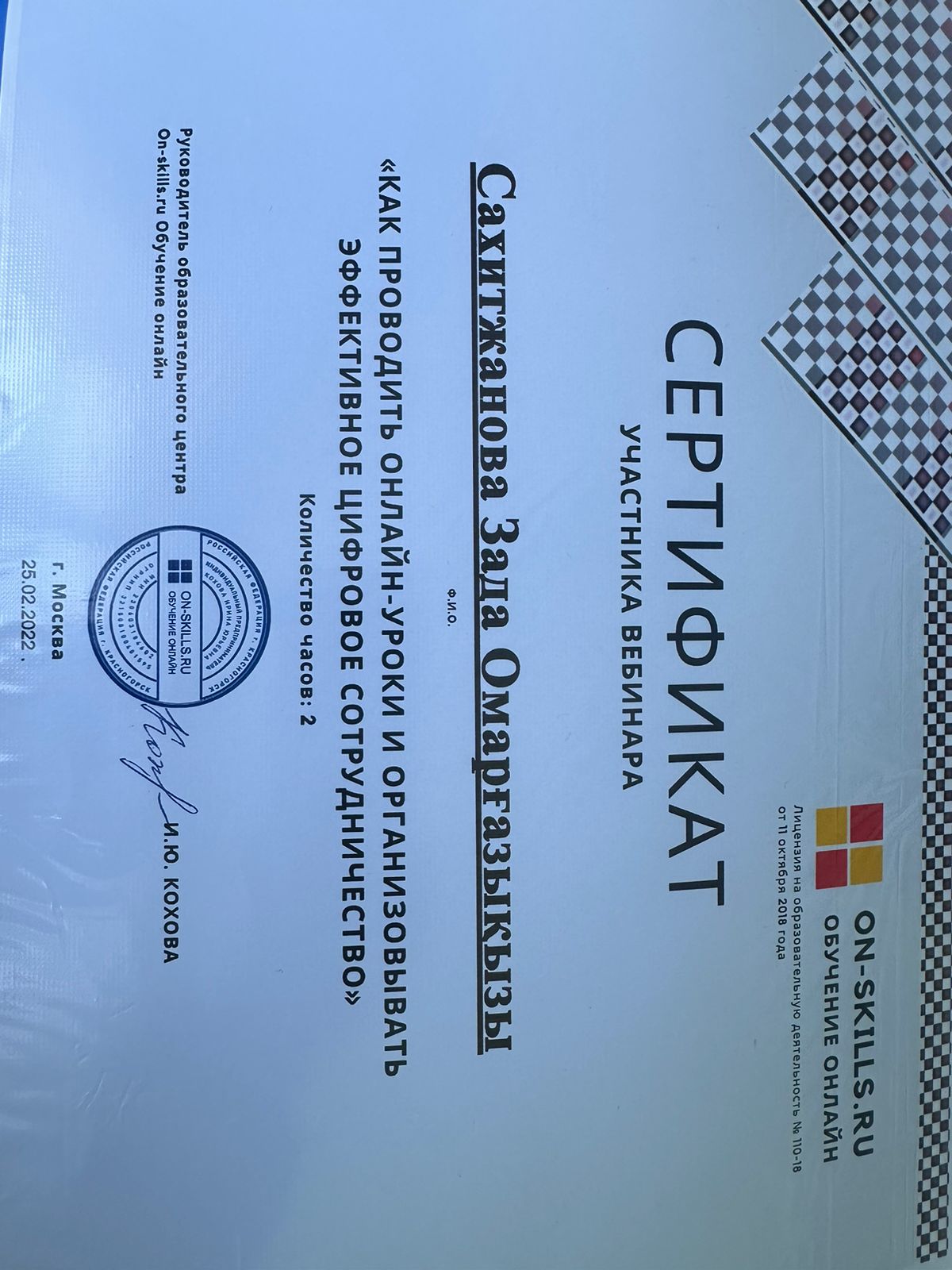 Сахитжанова Зада Омарғазықызы (07.01.1971 жылы Қызылорда облысы Қазалы ауданында туған) - ағылшын тілі маманы, филология ғылымдарының кандидаты. 1993 жылы Алматы шет тілдер педагогикалық институтын бітірген. 1993 жылдан Қ.А.Ясауи атындағы Халықаралық қазақ-түрік университетінде жемісті қызмет етіп келеді. 2010 жылы 10.01.09 - Фольклортану мамандығы бойынша «Көрұғлы»жырының еларалық нұсқалары:генезисі мен типологиясы» атты тақырыпта кандидаттық диссертация қорғады. Сахитжанова Зада Омарғазықызы - ғылыми-зерттеу бағыты бойынша халықаралық деңгейде жемісті еңбек етіп, ғылыми семинарларда ерекше қырымен танылып, ғалымдар арасында жоғары бағаланып жүрген ғалым.Студенттердің ғылыми-теориялық конференцияларында жетекшілік жасаудағы еңбектері де айтуға тұрарлық. Оның жетекшілігімен жүргізілген 1 ғылыми-зерттеу жұмысы Қазақстан республикасы жоғарыоку орындары студенттерінің ғылыми-зерттеу жұмыстарының Республикалық конкурсында жүлделі 3-орынға ие болды.2014-жылы «Өрлеу» бағдарламасымен Англияның Ньюкасл университетінде, 2015-жылы «Болашақ» бағдарламасымен Нидерландының Лейден университетінде ғылыми-педагогикалық тағылымдамадан өтті. Оның ғылыми-педагогикалық еңбектері ескеріліп, Университеттің дамуына қосқан ерекше үлесі үшін «Ұлағатты ұстаз» төс белгісімен және бірнеше рет алғыс хаттарымен марапатталды.Отбасылы, екі ұлдың анасы.