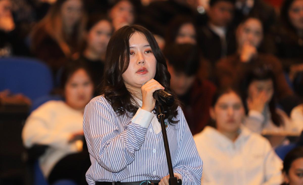 Затем выступил прокурор Туркестанской области Мурат Ажынурович: «В рамках концепции “Закон и порядок” мы вместе с обществом и населением обсуждаем актуальные проблемы нашего региона. В том числе нашей целью было провести встречу с молодёжью в этом университете и обсудить последствия правонарушений. В целом уровень преступности в области снизился на 9,6%. Считаю, что это результат совместной работы правоохранительных органов. Однако интернет-мошенничество, дроппинг, борьба с наркотиками и дорожно-транспортные происшествия всё ещё остаются актуальными проблемами. Казахский народ говорит: “Хочешь быть страной - правильно воспитай молодежь”. Поэтому, как старшее поколение, мы считаем своей главной задачей указывать молодёжи правильный путь и направлять её к добру», - отметил он.