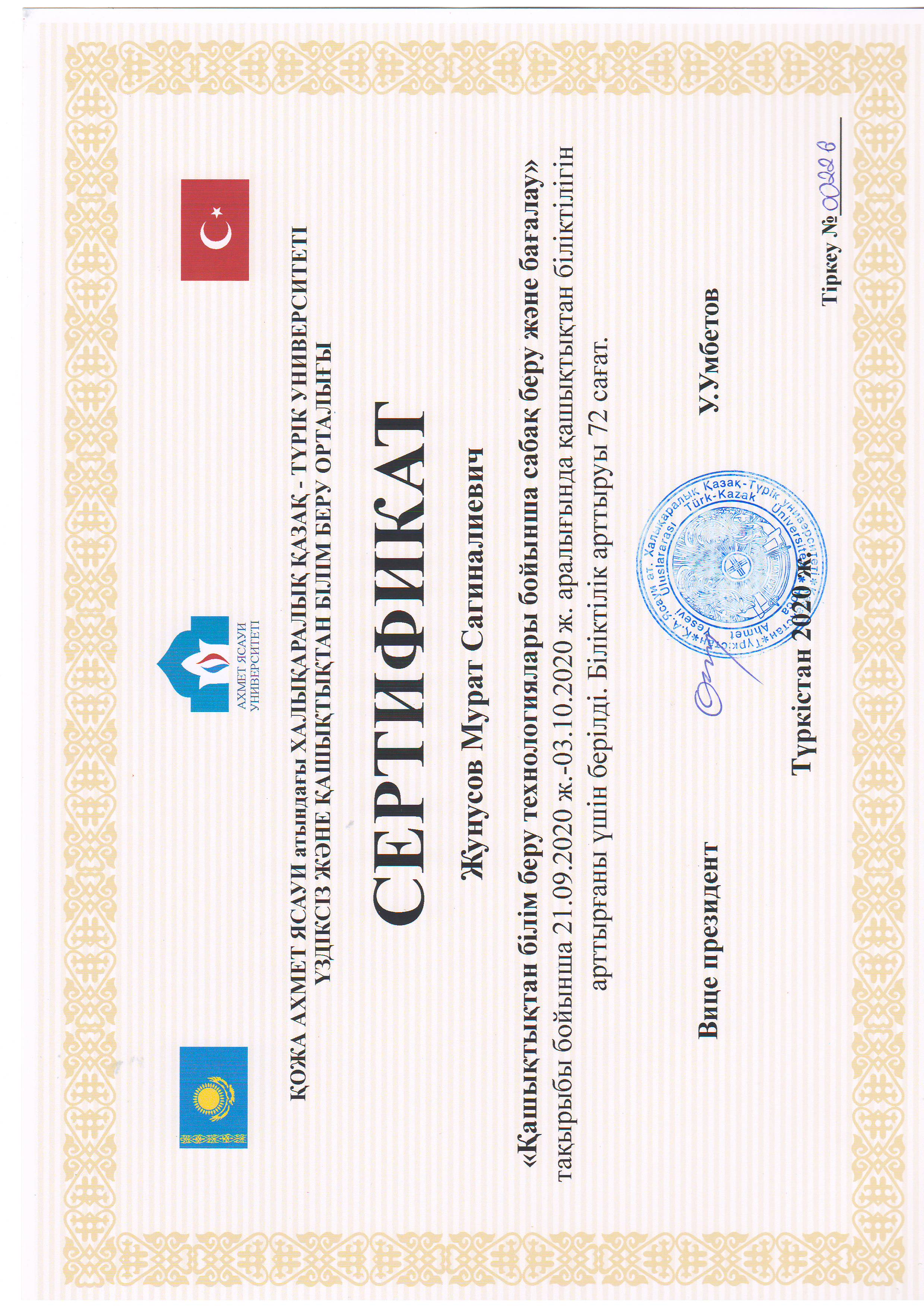 «Scopus, Elsevier, Clarivate Analitic, WoS» базасында тіркелген журнал – 4 мақала; ҚР БжҒм Білім және ғылым саласын бақылау комитеті ұсынатын тізімі бойынша және басқада отандық ғылыми журналдарда – 50 дан астам мақала; Жақын шет елдердегі басылымдарда – 8 мақала; Алыс шет елдердегі басылымдарда – 5 мақала; оқу және оқу-әдістемелік құралдар саны – 10 және 3 ендіру АКТ, 2-патент куәлігіне ие. | |