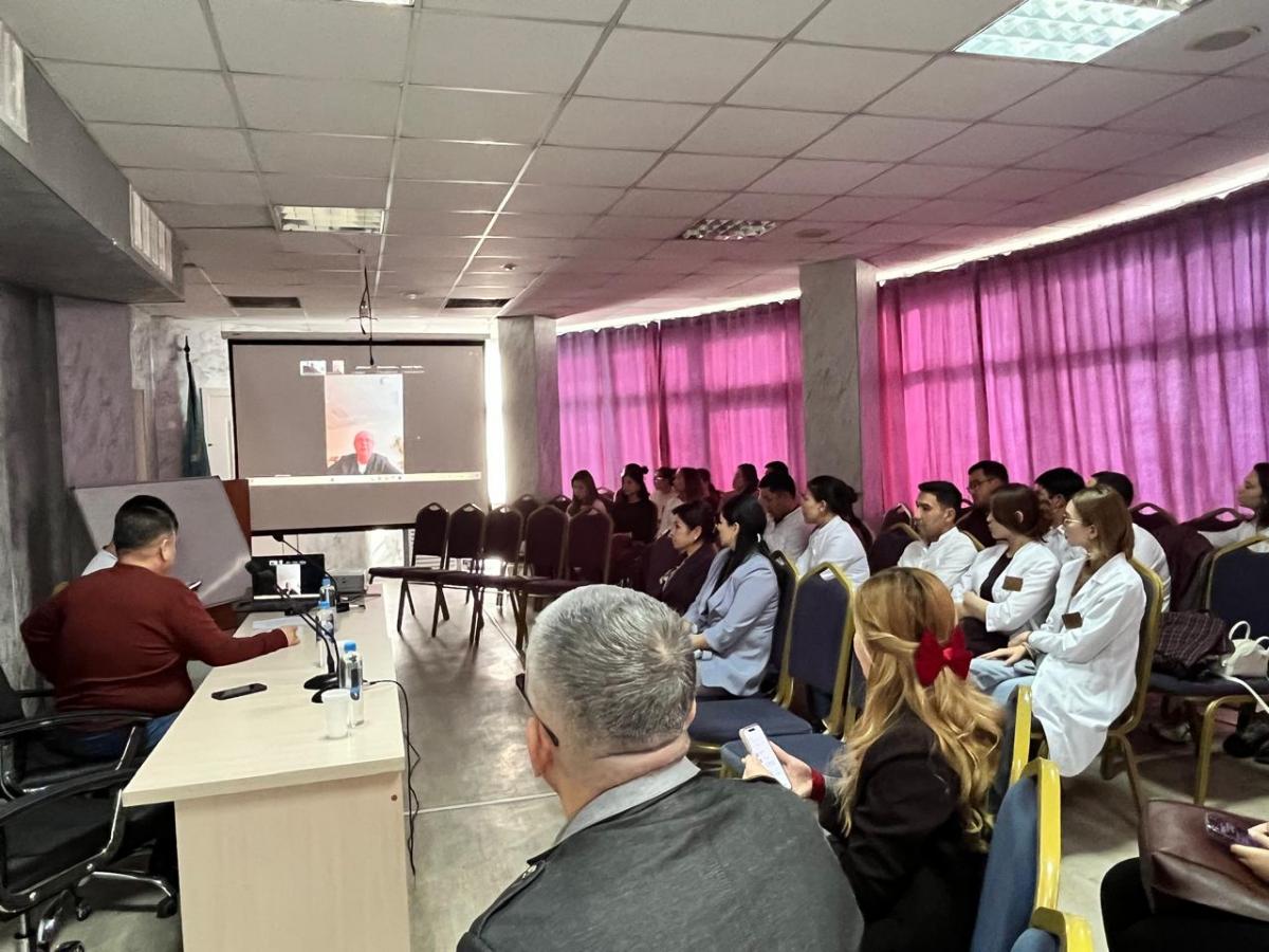 «Сүт безі обырының скринингі және алдын алу: заманауи көзқарас» тақырыбында Халықаралық қазақ-түрік университеті Жалпы дәрігерлік практика №1 кафедра меңгерушісі, м.ғ.к. Н.З.Шапамбаев, Жалпы дәрігерлік практика №1 кафедра м.ғ.к, К.Т.Кулаев ; Минск қаласы Онкологиялық орталығының Сәулелік диагностика бөлімінің меңгерушісі м.ғ.к., доцент А.М.Гуминскиидің, Белорусь Республикасы Н.Н.Александрова атындағы Республикалық ғылыми – практикалық онкологиялық орталығының Н.Ю. Парамонова ПЭТ бөлімінің меңгерушісі; м.ғ.к. Н. В.Крашенинникова, Наталья Владимировна Крашенинникова, Медициналық бейнелеу әдістері кафедрасының м.ғ.к., доценті, Ф.И. Иноземцев атындағы медициналық білім академиясы; Санкт-Петербург Мемлекеттік педиатриялық медицина университетінің физика және үздіксіз кәсіптік білім беру факультетінің радиология және биомедициналық бейнелеу кафедрасының доценті; Қ.А.Ясауи атындағы Халықаралық қазақ– түрік университетінің Жоғары оқу орнынан кейінгі медициналық білім беру факультетінің декан орынбасары Идаят Малика Галымжанкызы; №7 қалалық емханасының бас дәрігері Жанабаев Нұрлан Смадиарович; м.ғ.к., доцент К.С.Казбекова, оқытушылар: Г.Ж.Мырзабекова, 1-2 курс радиолог-резиденттер қатысуымен өтті.