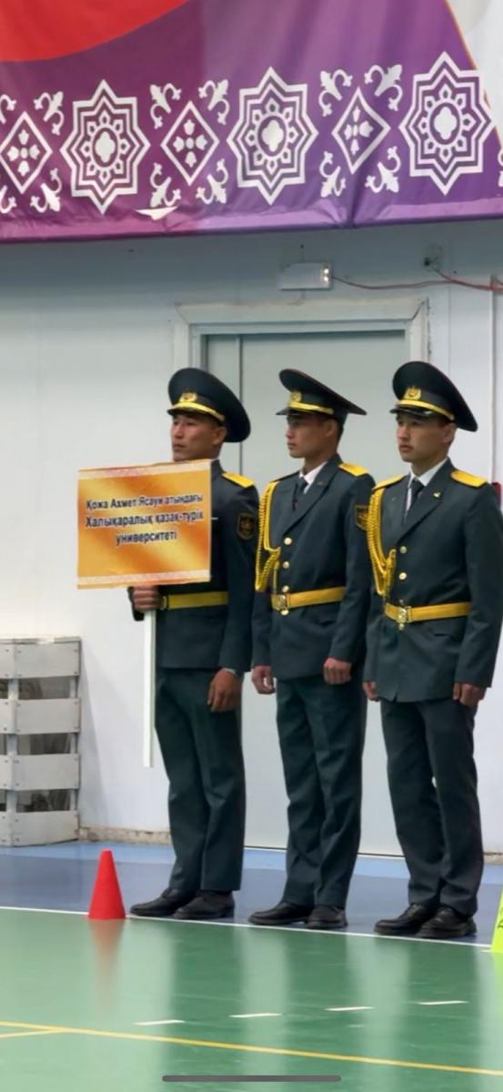 Түркістан қаласындағы Халықаралық туризм және меймандостық университетінде Қазақстан Республикасының ЖОО студенттер арасында «Бастапқы әскери дайындықты оқыту әдістемесі» пәні бойынша XVI Республикалық пәндік олимпиадасында Қожа Ахмет Ясауи атындағы Халықаралық қазақ-түрік университеті Спорт және өнер факулььтеті «Дене тәрбиесі және бастапқы әскери дайындық» кафедрасының Запастағы полковник, аға оқытушы Куанышбаев Бахытжан Жанадилович, 6В01485-Дене шынықтыру және бастапқы әскери дайындық мамандығының 2 курс студенті Болыс Сұлтан Берікболұлы 6В01404-Бастапқы әскери дайындық мамандығының 3,4 курс студенттері Садулла Бабажан Бақытжанұлы, Сүлейменов Олжас Нұргалиұлы, Сапарбек Мағжан Даниярұлы 14 университет арасында өтілген республикалық олимпиадада жалпы командалық есепте III орын сонымен қатар жеке номинация бойынша тест тапсырмаларын орындау төрімен III орын, Әскери спорттық эстафета сайысынан III орын алды.