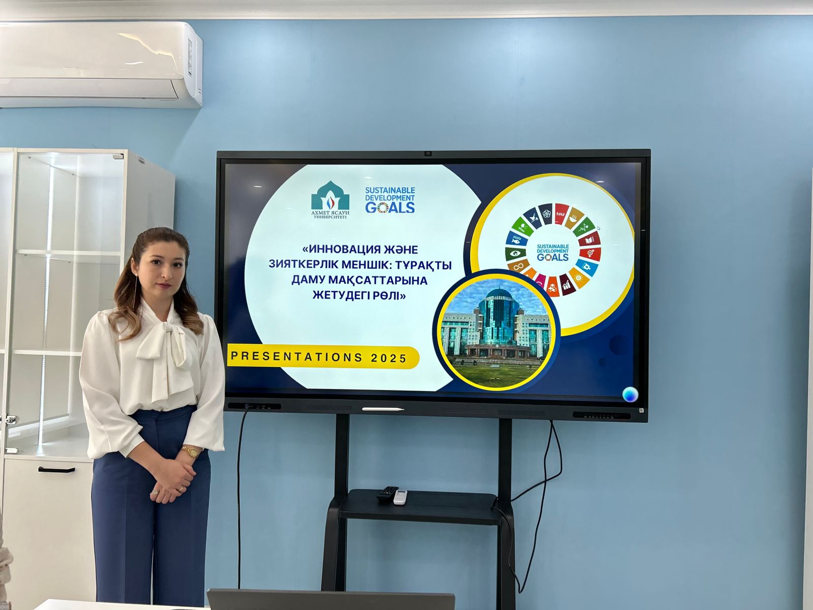 Турсунходжаева Шахзода, Тұрақты даму ғылыми-зерттеу орталығының жетекші ғылыми қызметкері, «Инновациялар және зияткерлік меншік: тұрақты даму мақсаттарына жетудегі рөлі» тақырыбында мазмұнды баяндама жасап, инновациялық ойлау мен тұрақты даму ұстанымдарының өзара байланысына ерекше назар аударды.