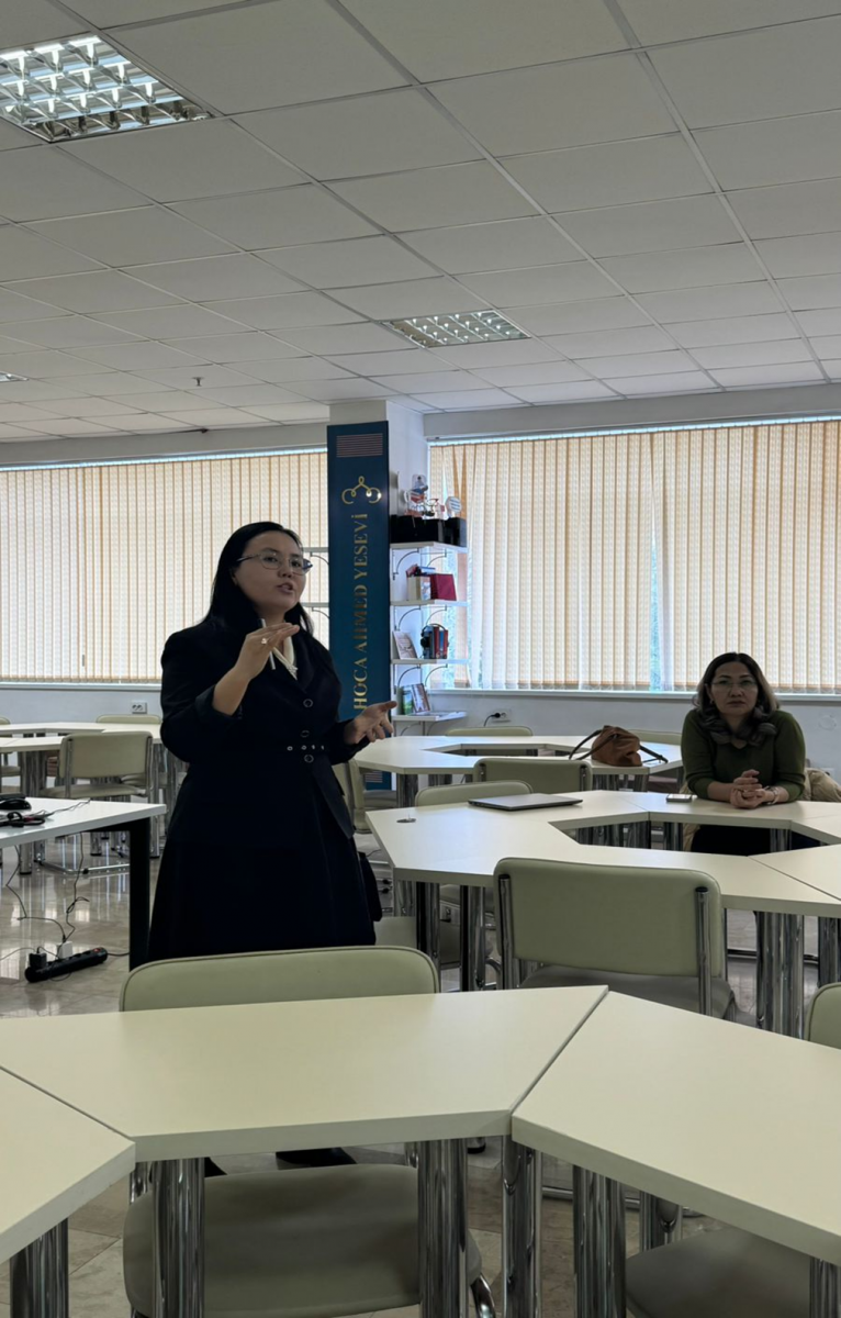 2026 жылғы 24 ақпанда Қожа Ахмет Ясауи атындағы Халықаралық қазақ-түрік университеті кітапханасының коворкинг залында Білім беру және гуманитарлық зерттеулер факультетінің PhD, аға оқытушысы Назира Тұрсынбаева «Ішкі қасиеттерді өлшеу: сенімді және валидті шкалаларды құрастыру» тақырыбында ғылыми-әдістемелік семинар өткізді. Семинарға университеттің магистранттары мен докторанттары қатысып, психологиялық және әлеуметтік ғылымдар саласындағы өлшеу әдістерінің ғылыми негіздерімен танысты.