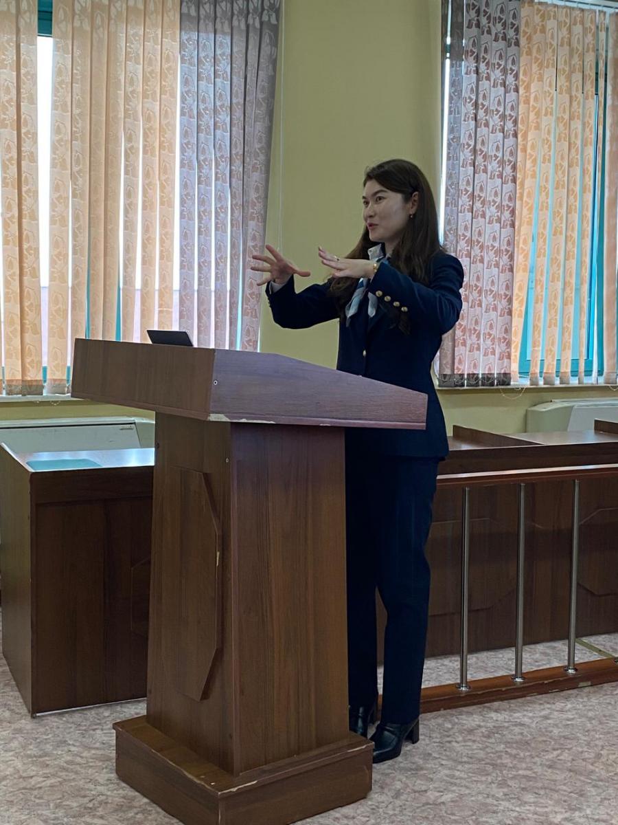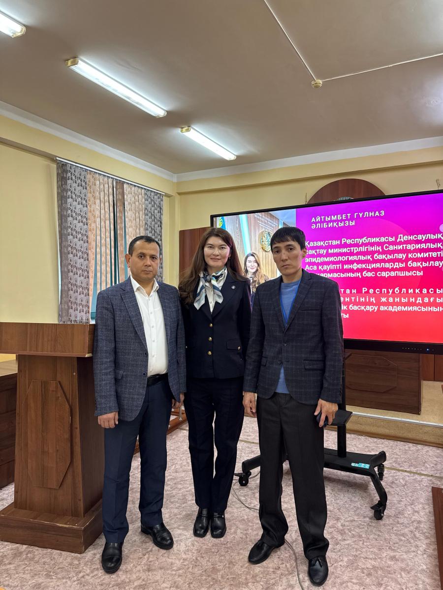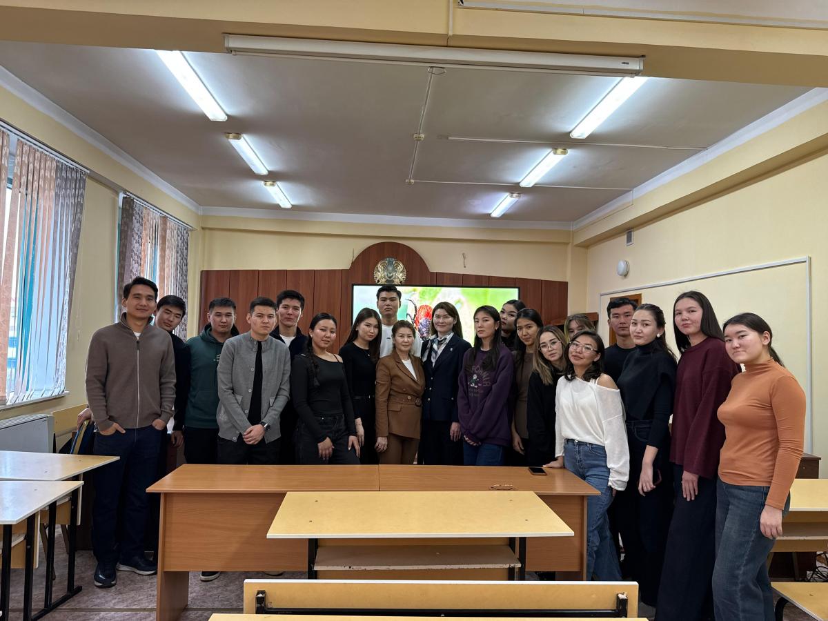 Арнайы қонақ - Қазақстан Республикасы Денсаулық сақтау министрлігінің Санитариялық-эпидемиологиялық бақылау комитеті Аса қауіпті инфекцияларды бақылау басқармасының бас сарапшысы, Қазақстан Республикасы Президентінің жанындағы Мемлекеттік басқару академиясының магистранты Айтымбет Гүлназ Әлібиқызы студенттермен өз өмір жолын, мемлекеттік кызметтің, коғамдағы орнын және кәсібіндегі жауапкершілікті терең, толғай отырып, жастарға адал еңбек пен уздіксіз дамудың маңызын айрықша атап өтті.