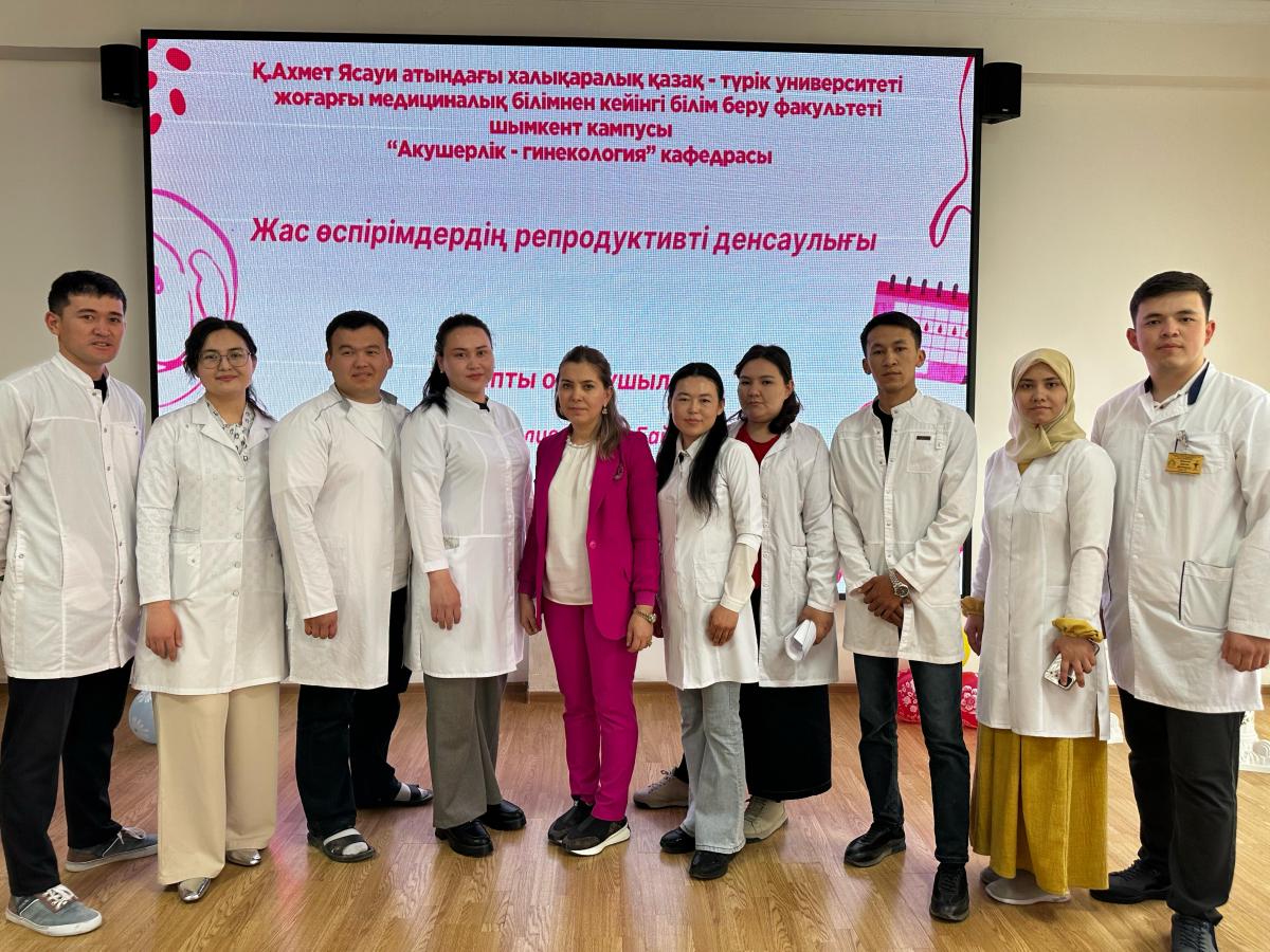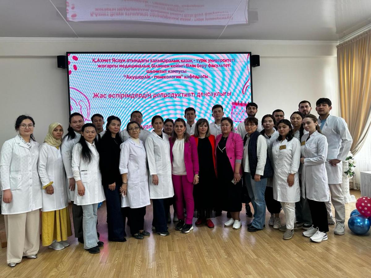 «Жасөспірімдердің репродуктивті денсаулығы» атты ғылыми тәжирибелік іс-шарамызды    Қожа Ахмет Ясауи атындағы халықаралық қазақ-түрік университеті, Шымкент кампусы, Жоғары  оқу орнынан кейінгі     медициналық білім беру факультетінің деканы Ж.А.Жагипарова, Авиценна атындағы жоғары медициналық колледж директорының тәрбие-ісі жөніндегі орынбасары  З.Е.Кубеева сөз сөйлеп ашып берді.