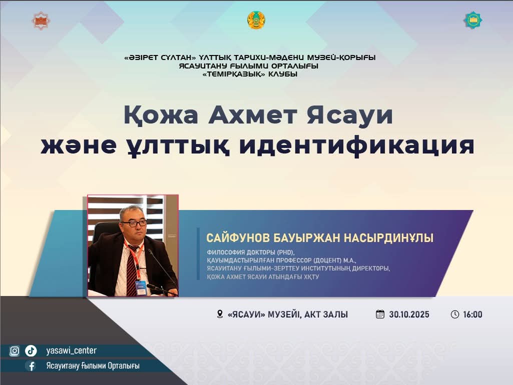 2025 жылғы 30 қазанда «Әзірет Сұлтан» мемлекеттік тарихи-мәдени қорық-музейінің Ясауитану ғылыми орталығында «Қожа Ахмет Ясауи және ұлттық идентификация» тақырыбында ғылыми семинар өтті.
