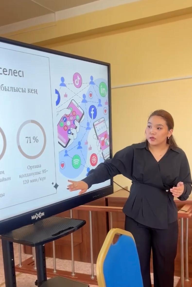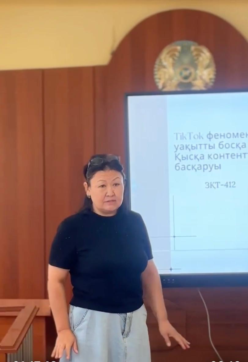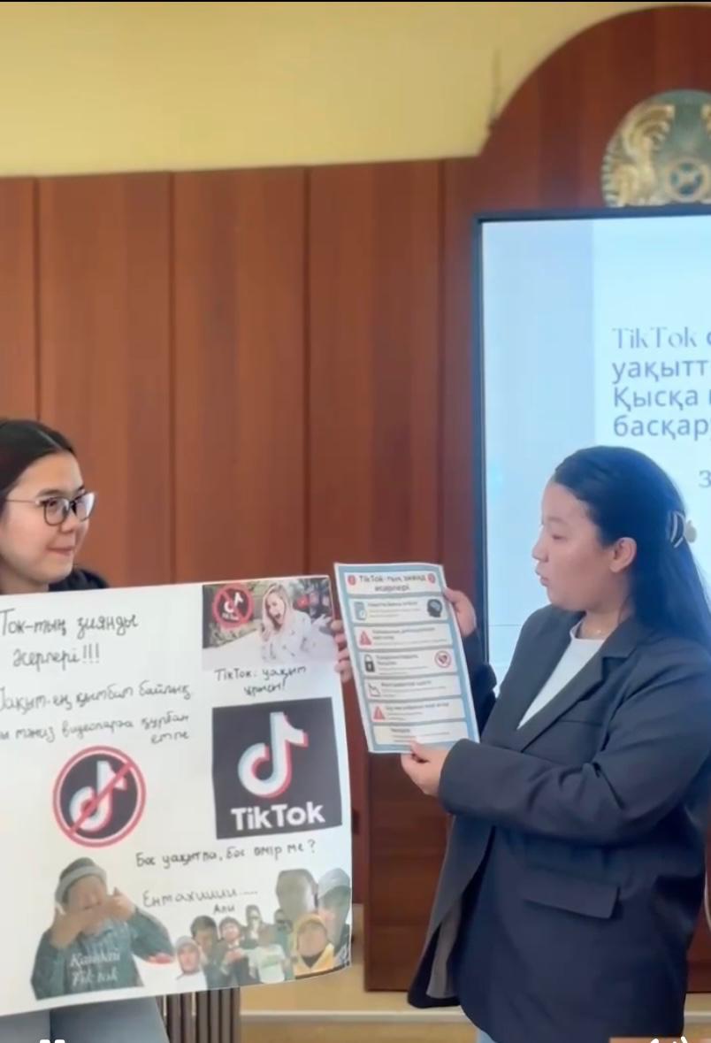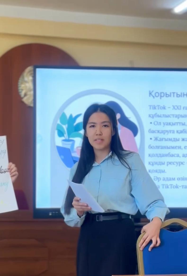 ????Тақырып - «TikTok феномені және уақытты босқа кетіру - қысқа контенттің, сананы басқаруы». Бұл мәселе қазіргі жастардың күнделікті өмірімен тікелей байланысты