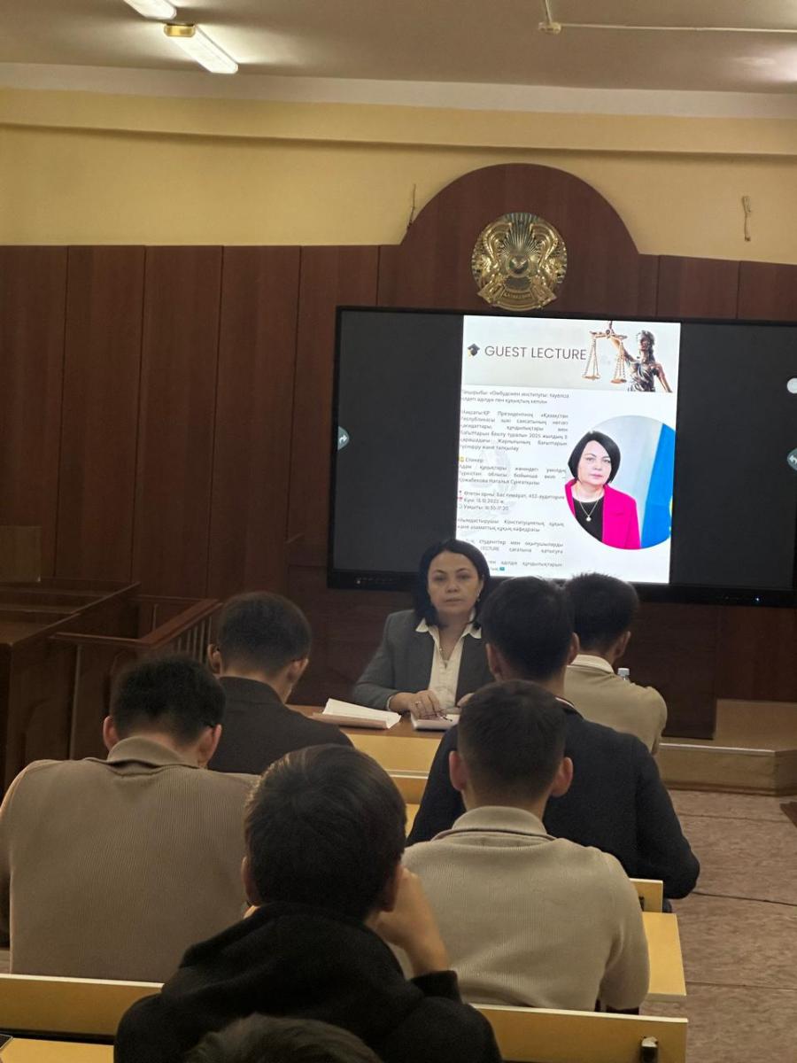 Қожа Ахмет Ясаиу атындағы Халықаралық қазақ-түрік университеті Заң факультетінің Конституциялық құқық және азаматтық құқық кафедрасының ұйымдастыруымен ҚР Президентінің «Қазақстан Республикасы ішкі саясатының негізгі қағидаттары, құндылықтары мен бағыттарын бекіту туралы» 2025 жылдың 5 қарашадағы Жарлығының бағыттарын түсіндіру және талқылау негізінде құқықтық тәртіп пен мәдениетті арттыру мақсатында