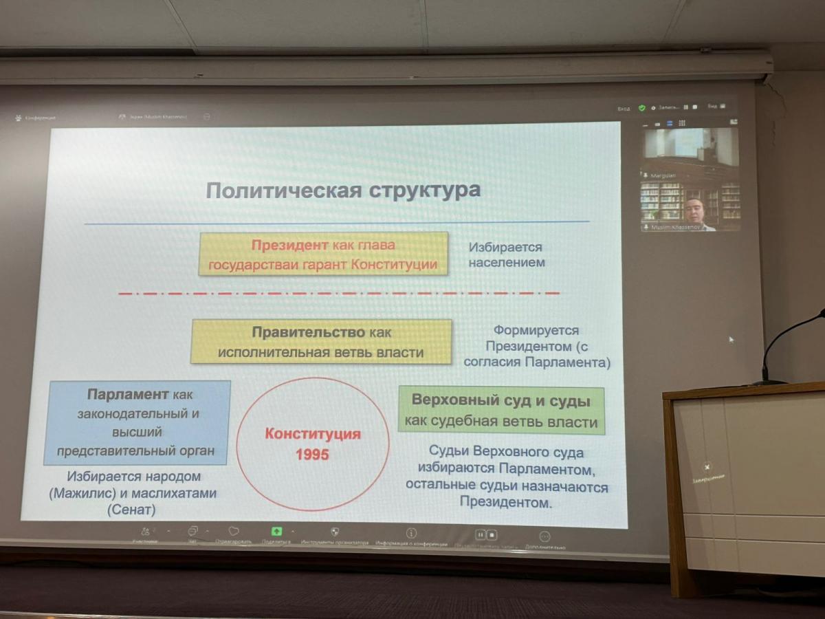 Заң факультетінің оқытушы-профессорлары мен білім алушылары үшін “Қазақстанның конституциялық эволюциясы: көшпелі басқарудан заманауи басқаруға дейін” тақырыбында ғылыми семинар (онлайн) ұйымдастырылды.