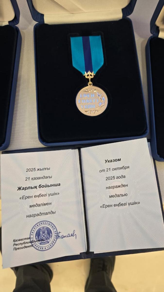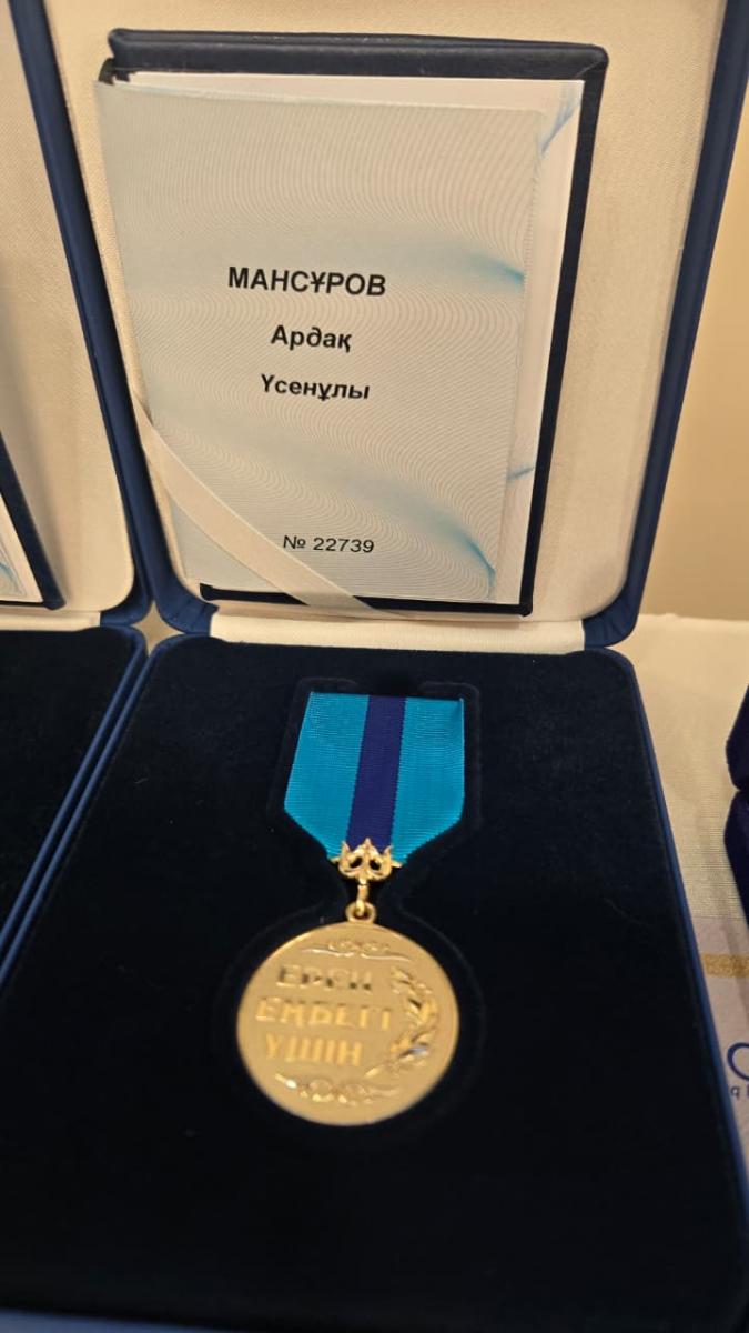 Заң факультеті, Конституциялық құқық және азаматтық құқық кафедрасының 8D04204 Құқық білім беру бағдарламасының 2 курс докторанты Мансұров Ардақ Үсенұлы, ҚР Президенті Қасымжомарт Кемелұлы Тоқаевтың 2025 жылғы 21 қазандағы жарлығы бойынша “Ерен еңбегі үшін” төсбелгісімен марапатталды.