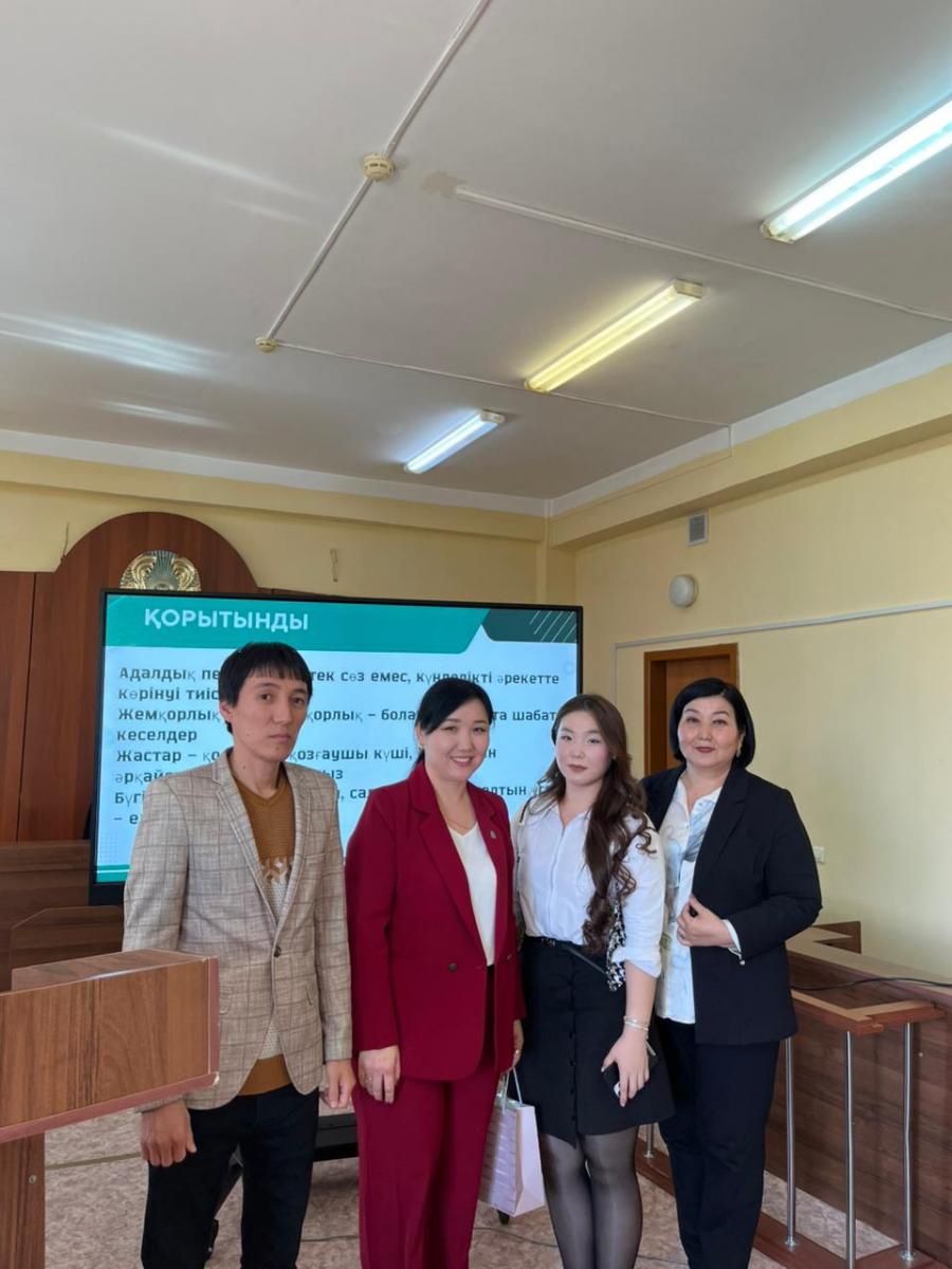 Қожа Ахмет Ясауи атындағы Халықаралық қазақ-түрік университеті Заң факультетінің аға оқытушысы Алимбаева Ақтолқын Алмасханқызының жетекшілігімен Құқық қорғау қызметі мамандығының 2-курс білімгерлері арасында «Адалдық пен ар-ұят – жемқорлық пен нашақорлықсыз болашақтың негізі» атты ашық тәрбиелік іс шара өткізілді.
