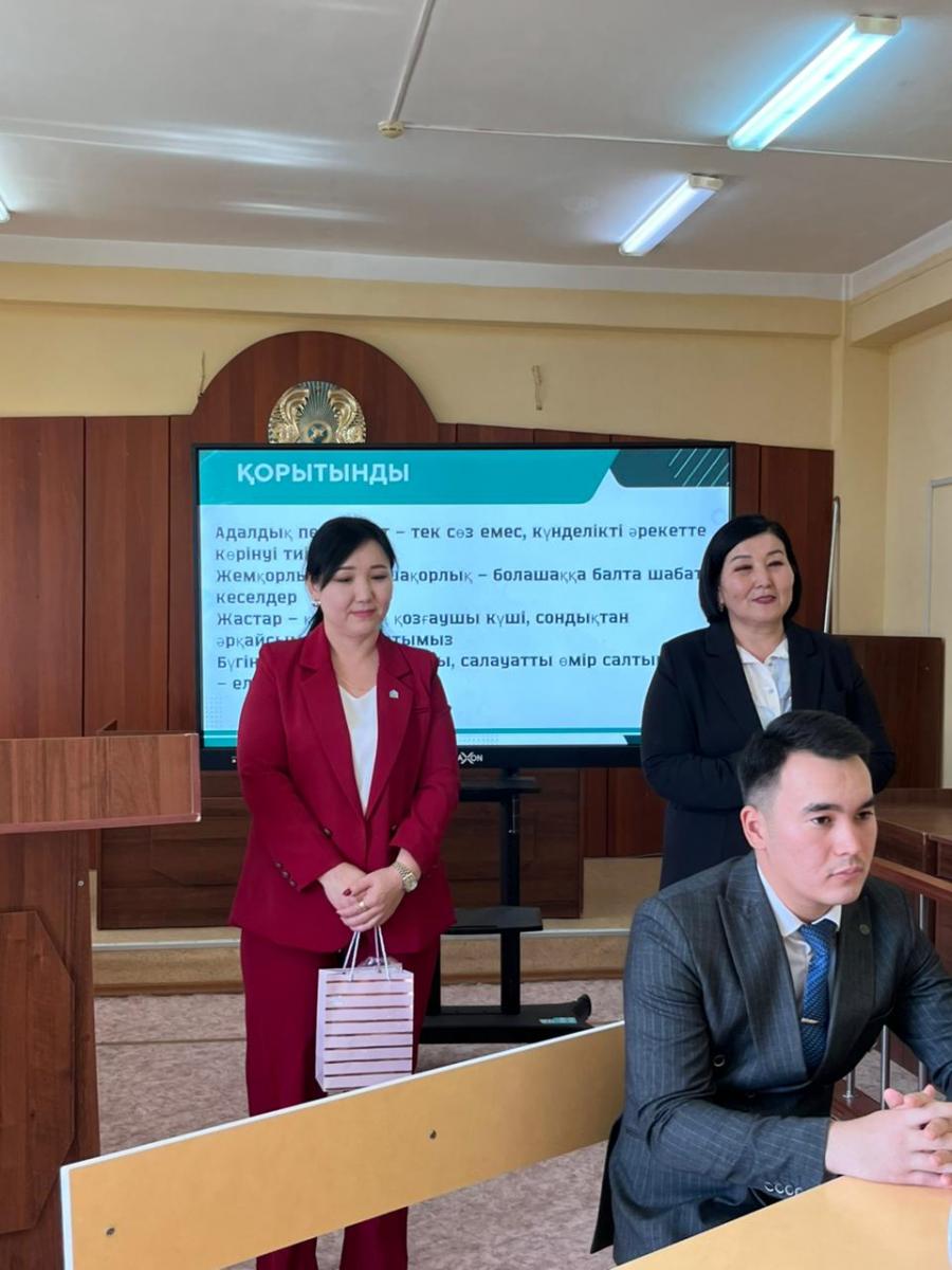 Кездесу барысында білімгерлер белсенділік танытып, өз ойларын ортаға салып, қоғамдағы өзекті мәселелерге бейжай қарамау қажеттігін атап өтті. Мұндай іс-шаралар жастардың бойында адамгершілік пен жауапкершілікті арттырып, саналы өмір салтын ұстануға бағыт береді.