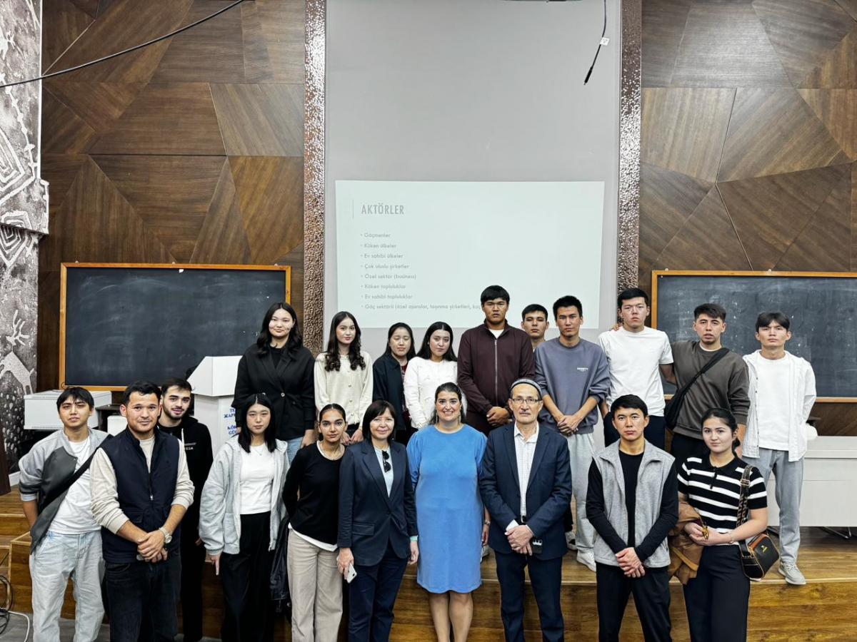 2025 жылдың 24 қазан күні Экономика және басқару факультеті, Халықаралық қатынастар кафедрасының ұйымдастыруымен кафедрасының аға оқытушысы, Dr. Гулеже Шенелдің қатысуымен “Халықаралық көші-қон үрдістері” тақырыбында ғылыми-тәжірибелік семинар өткізілді. Іс-шараның мақсаты кафедраның ғылыми-ағартушылық қызметін жандандыру және студенттердің халықаралық қатынастар саласындағы білімін тереңдету болды. Іс-шара қазіргі кезеңдегі халықаралық миграцияның өзекті мәселелерін талқылауға арналды. Семинар барысында көші-қонның түрлері, оған ықпал етуші факторлар, миграциялық процестердің жаһандық картадағы негізгі бағыттары, сондай-ақ БҰҰ, IOM, UNHCR және ILO секілді халықаралық ұйымдардың рөлі жан-жақты қарастырылды. Сонымен қатар босқындардың мәртебесіне қатысты құқықтық нормалар мен миграцияның әлеуметтік-экономикалық салдары талданды. Қатысушылар белсенді қызығушылық танытып, сұрақтар қойып, халықаралық ұйымдардағы кәсіби мүмкіндіктер жөнінде пікір алмасты.