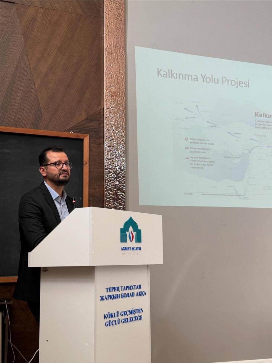 2025 жылдың 10 қыркүйек күні Экономика және басқару факультеті, Халықаралық қатынастар кафедрасының ұйымдастыруымен Имам Жафар Аль-Садиқ университетінің оқытушысы Dr. Башар Албаятидың қатысуымен «Таяу Шығыстағы соңғы оқиғалар аясында Ирактың геосаяси маңызы» тақырыбында семинар өткізілді. Іс-шараның мақсаты студенттердің Таяу Шығыс аймағындағы геосаяси өзгерістер мен Ирактың халықаралық қатынастардағы рөлі туралы білімін тереңдету болды. Семинар барысында Ирактың геостратегиялық маңызы, аймақтағы сыртқы акторлардың ықпалы және қауіпсіздік мәселелері талқыланды. Қатысушылар тақырып бойынша қызығушылық танытып, пікір алмасты.
